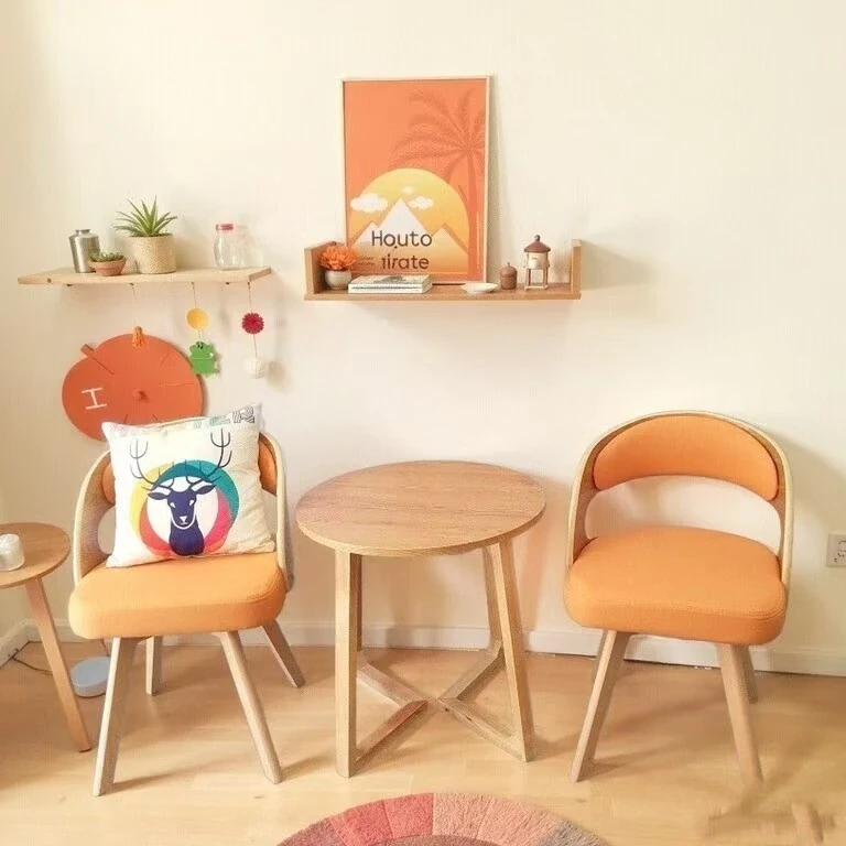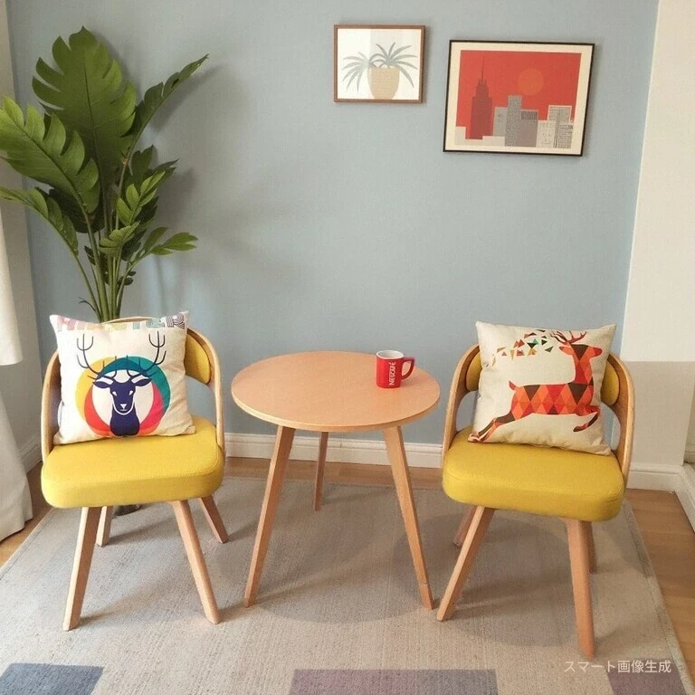 ローテーブル布製+黄色の椅子 ローテーブル直径60 高さ60
