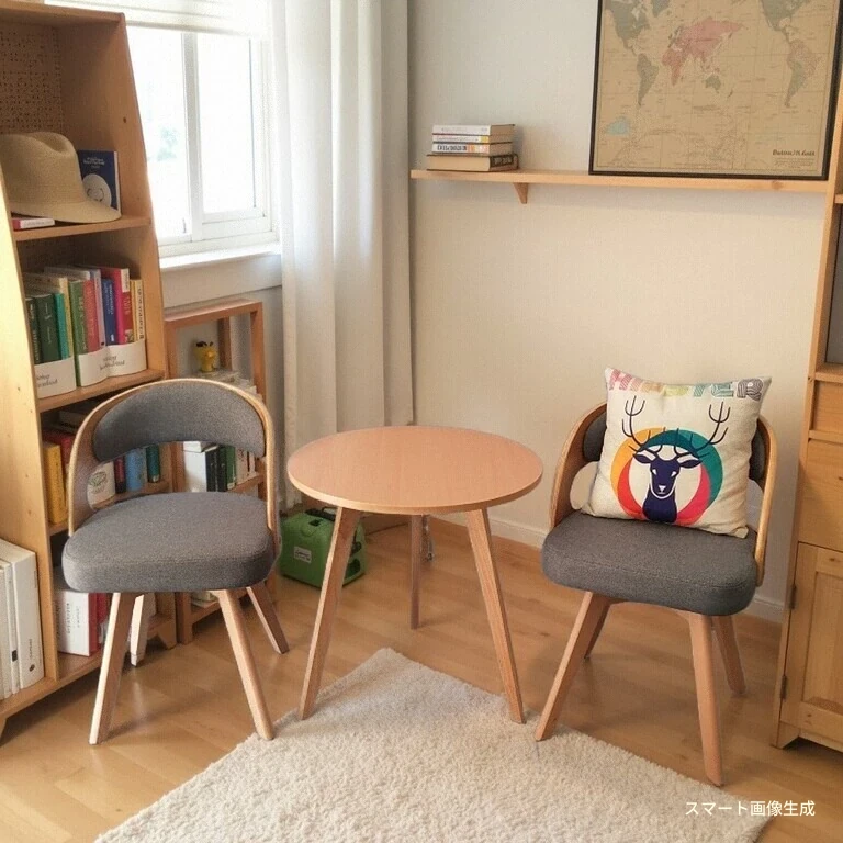 灰色の布製2脚+テーブル テーブル直径60 高さ60