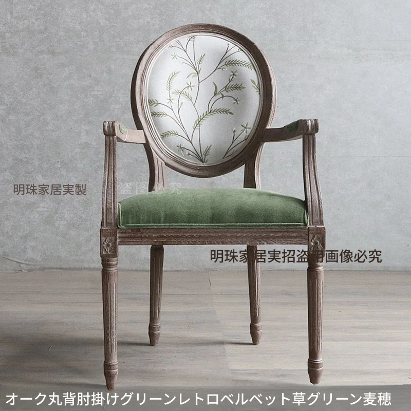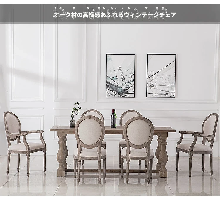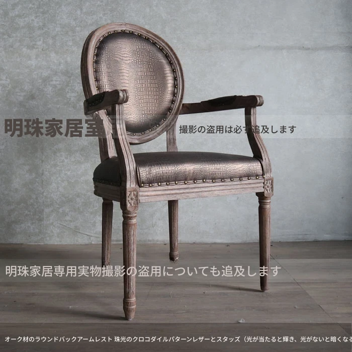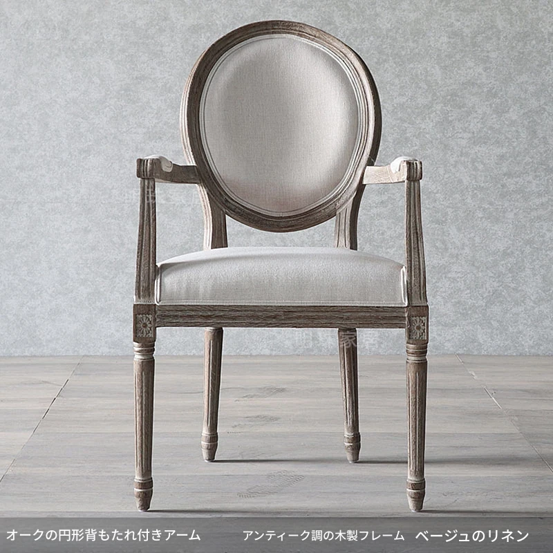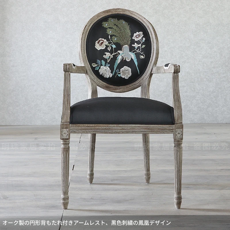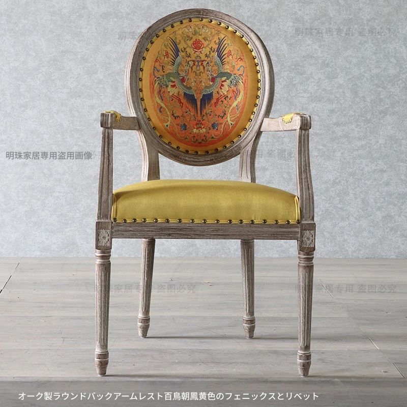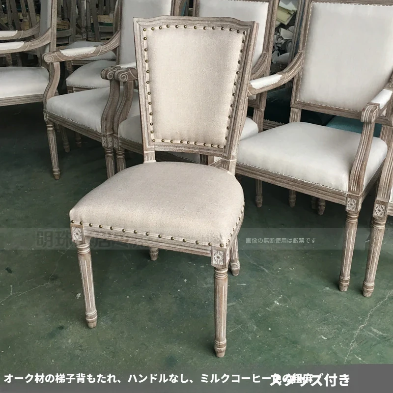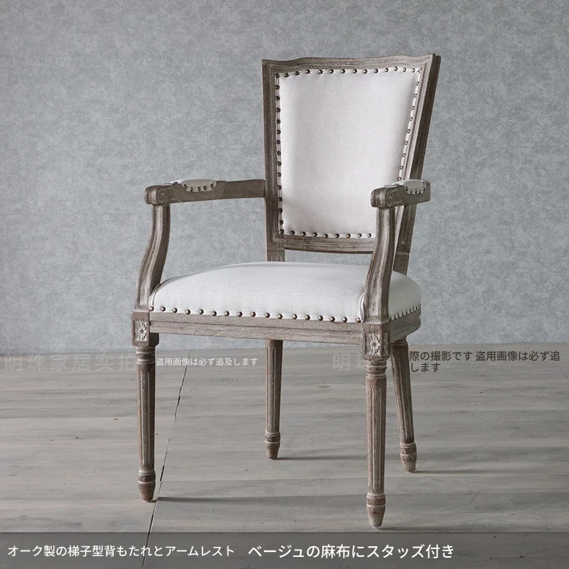 アメリカンスタイルのレトロな無垢オーク材ダイニングチェア - 自宅や影響スタジオ、バー、レストラン、民宿、別荘に最適!ヴィンテージ感あふれるフレンチスタイルのアームチェアで、優雅なひとときを演出します。