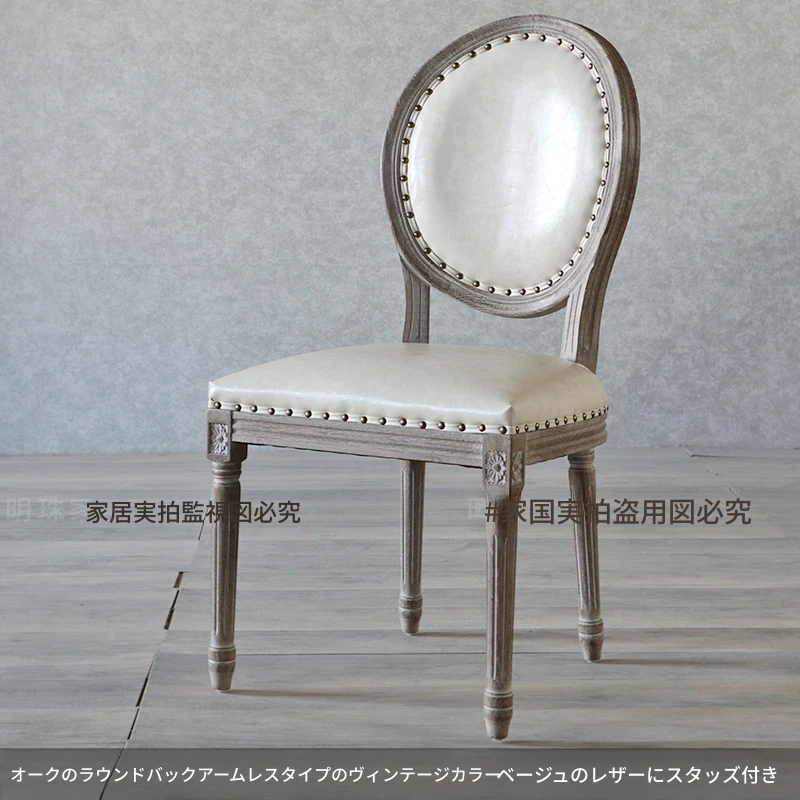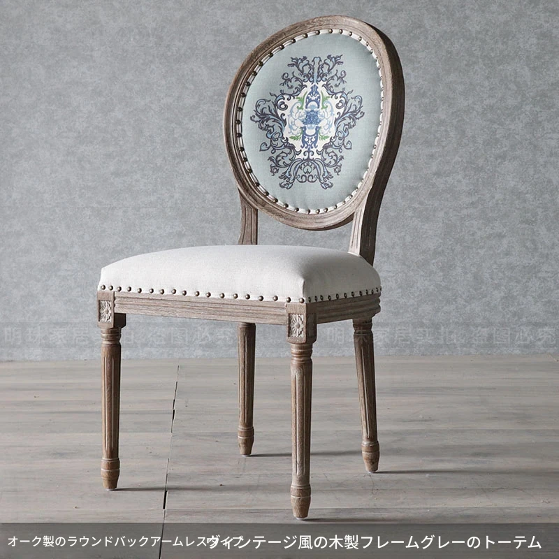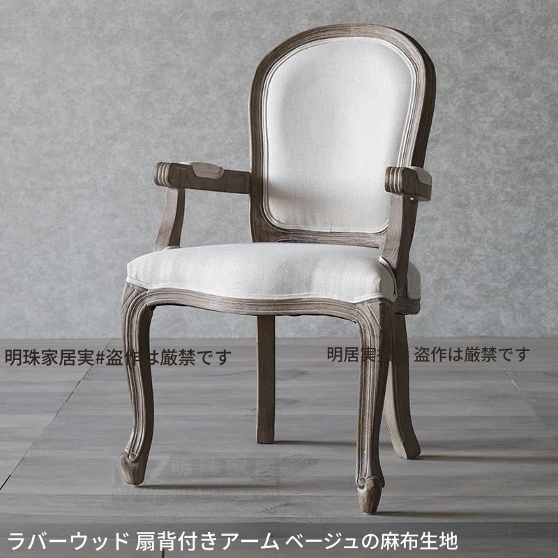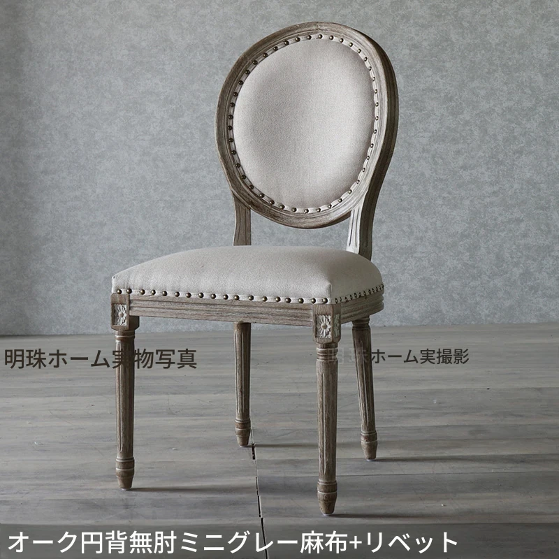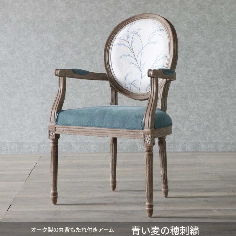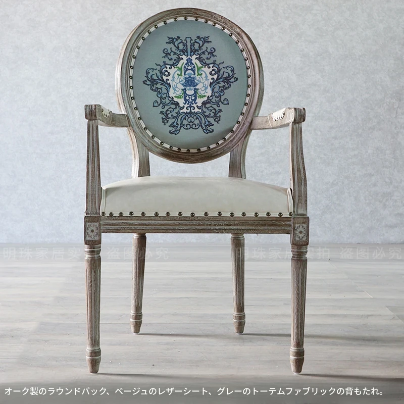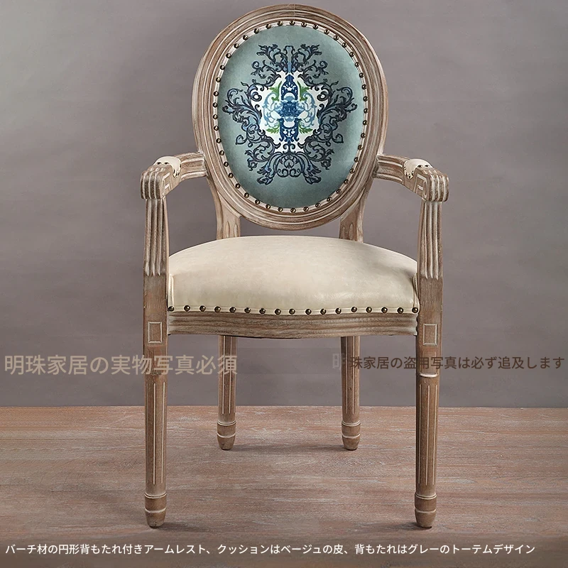 アメリカンスタイルのレトロな無垢オーク材ダイニングチェア - 自宅や影響スタジオ、バー、レストラン、民宿、別荘に最適!ヴィンテージ感あふれるフレンチスタイルのアームチェアで、優雅なひとときを演出します。