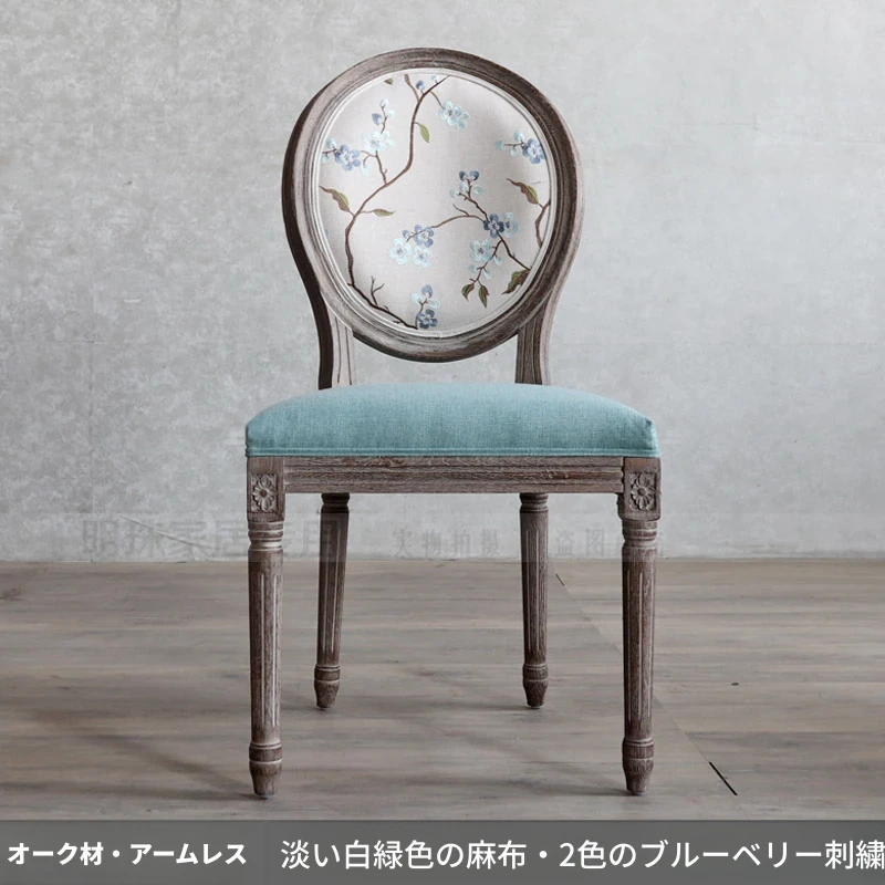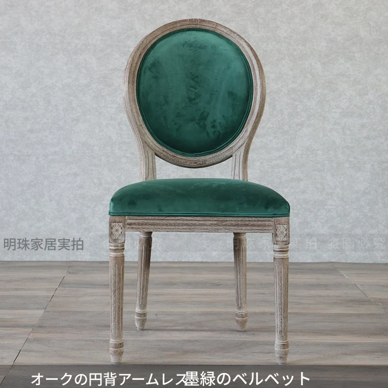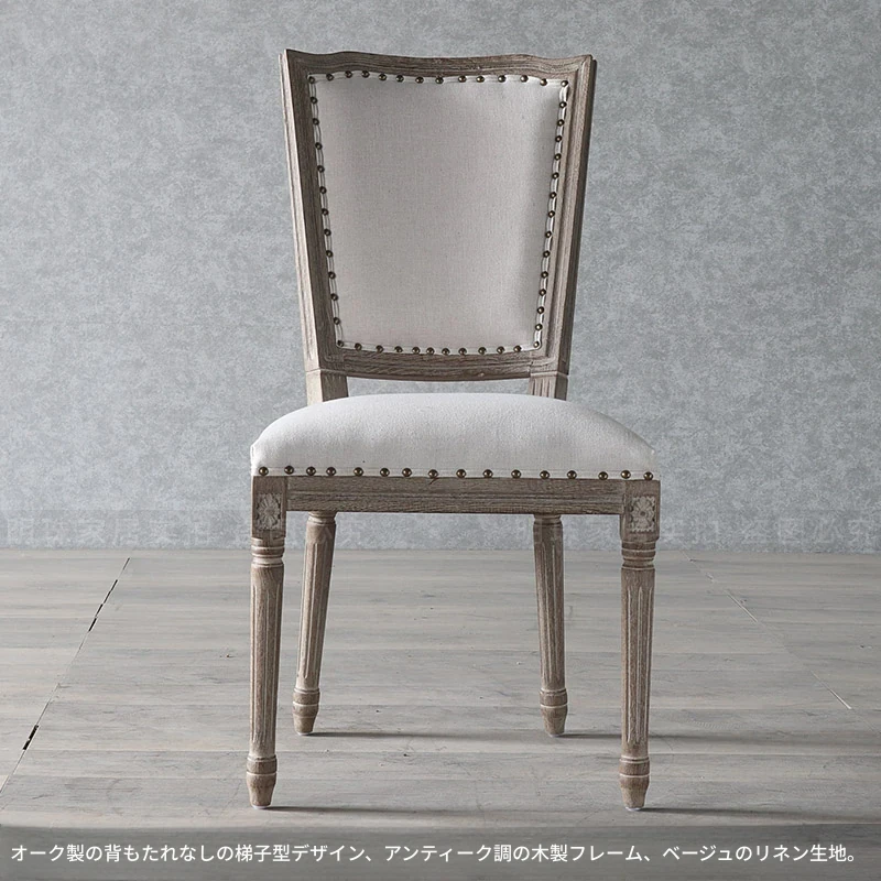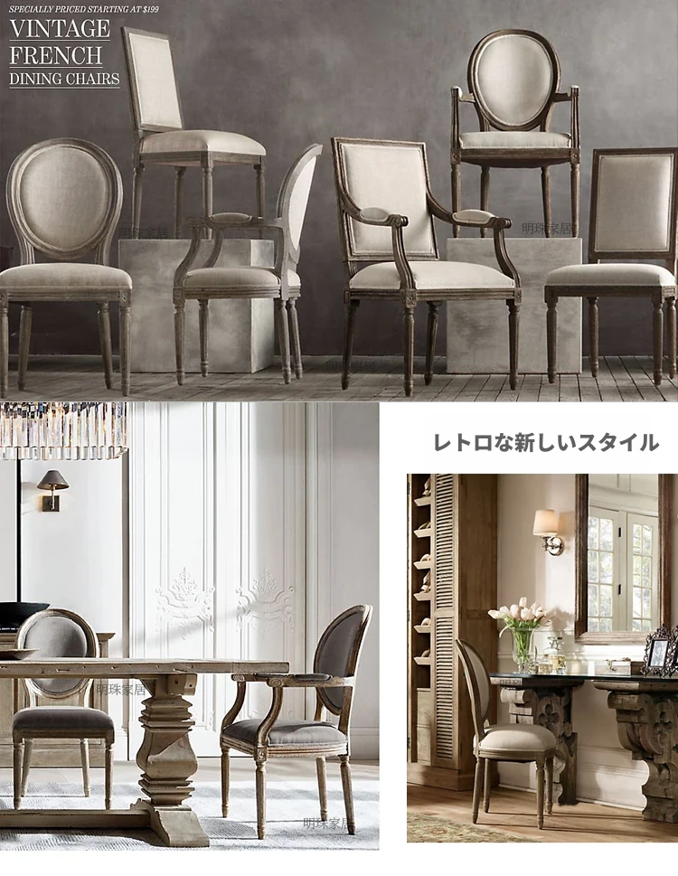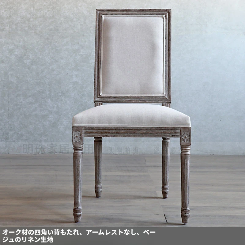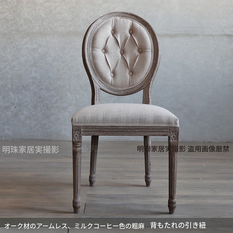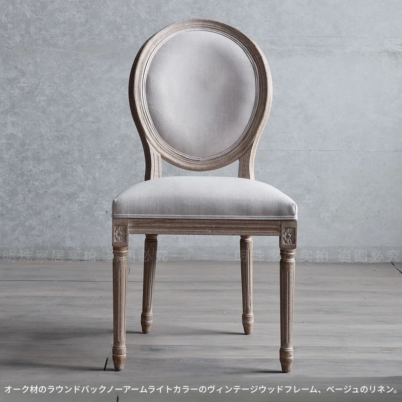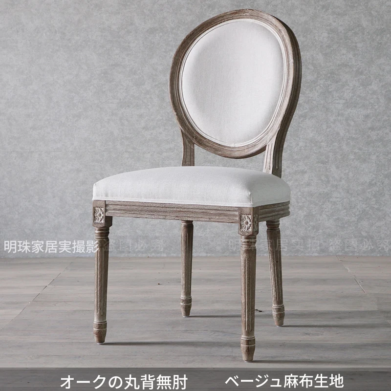 アメリカンスタイルのレトロな無垢オーク材ダイニングチェア - 自宅や影響スタジオ、バー、レストラン、民宿、別荘に最適!ヴィンテージ感あふれるフレンチスタイルのアームチェアで、優雅なひとときを演出します。