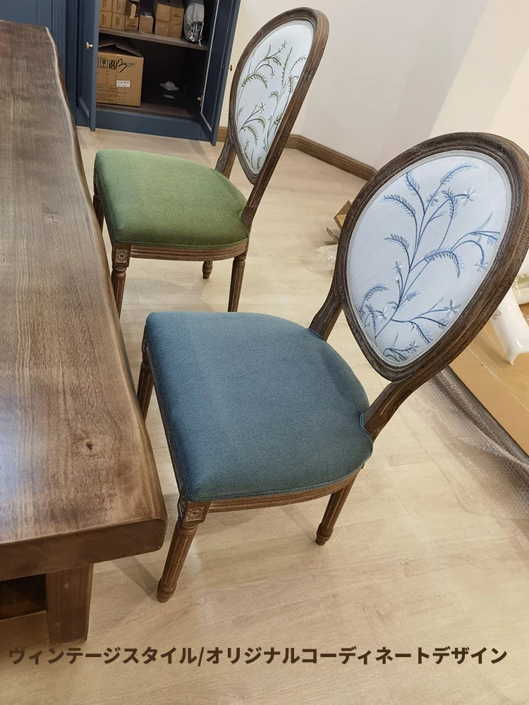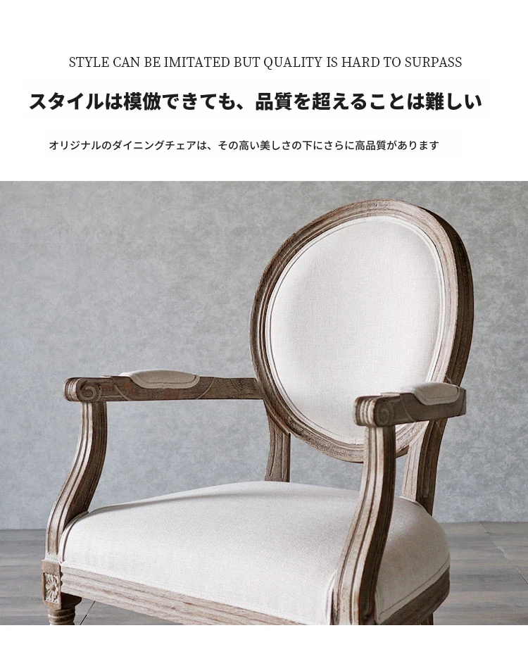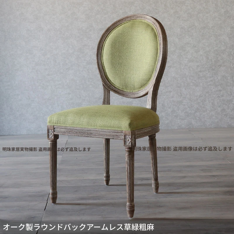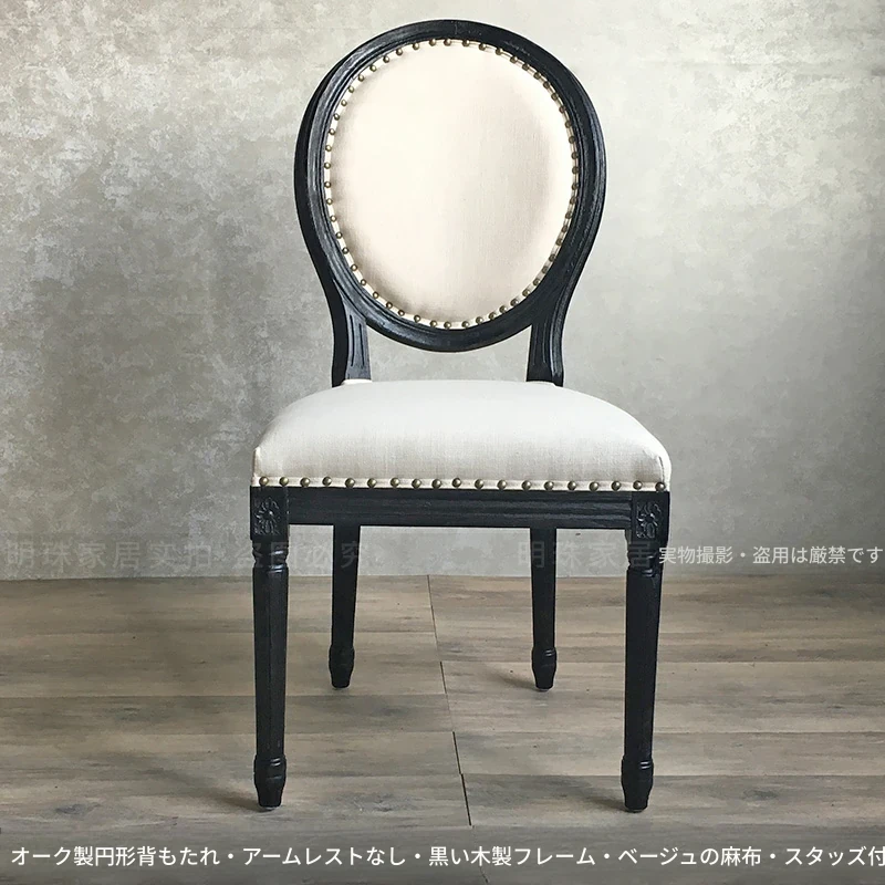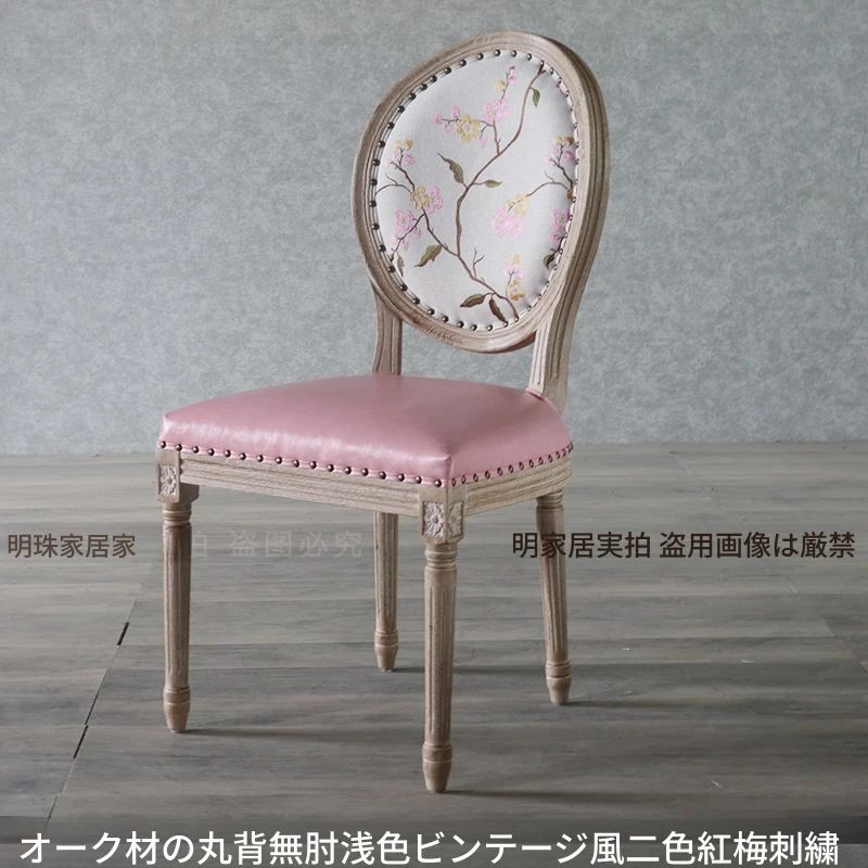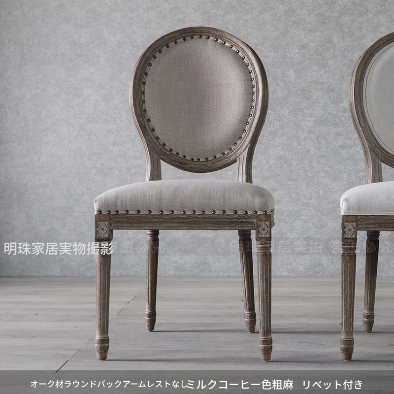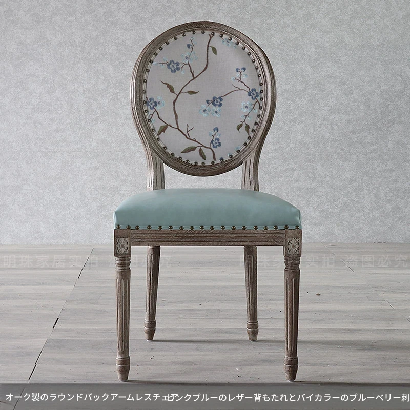 アメリカンスタイルのレトロな無垢オーク材ダイニングチェア - 自宅や影響スタジオ、バー、レストラン、民宿、別荘に最適!ヴィンテージ感あふれるフレンチスタイルのアームチェアで、優雅なひとときを演出します。