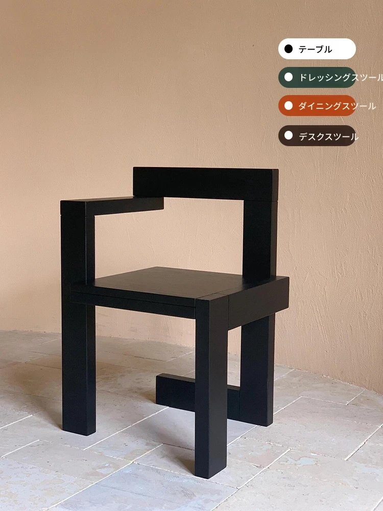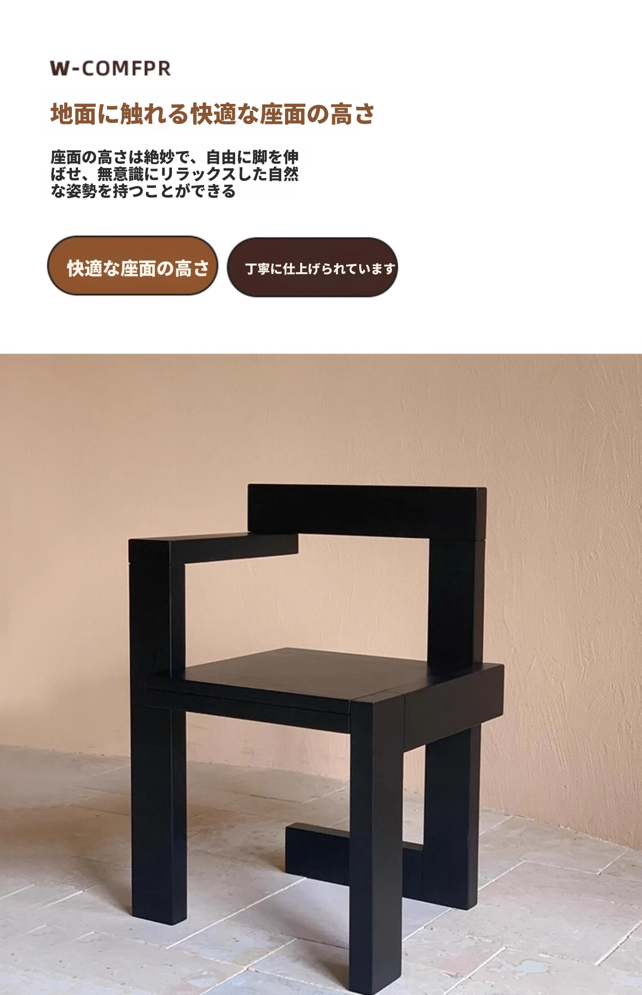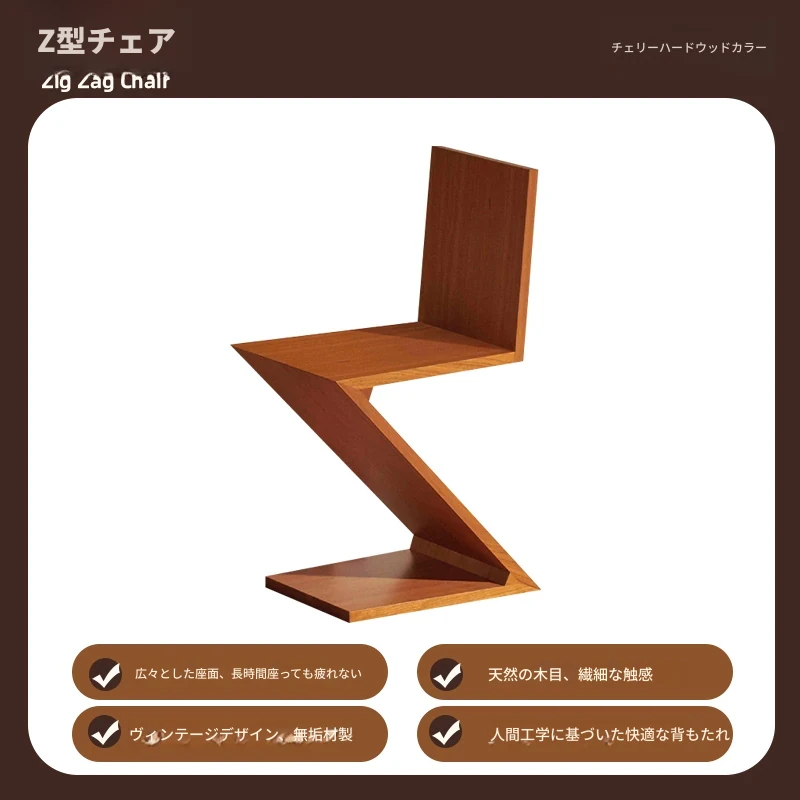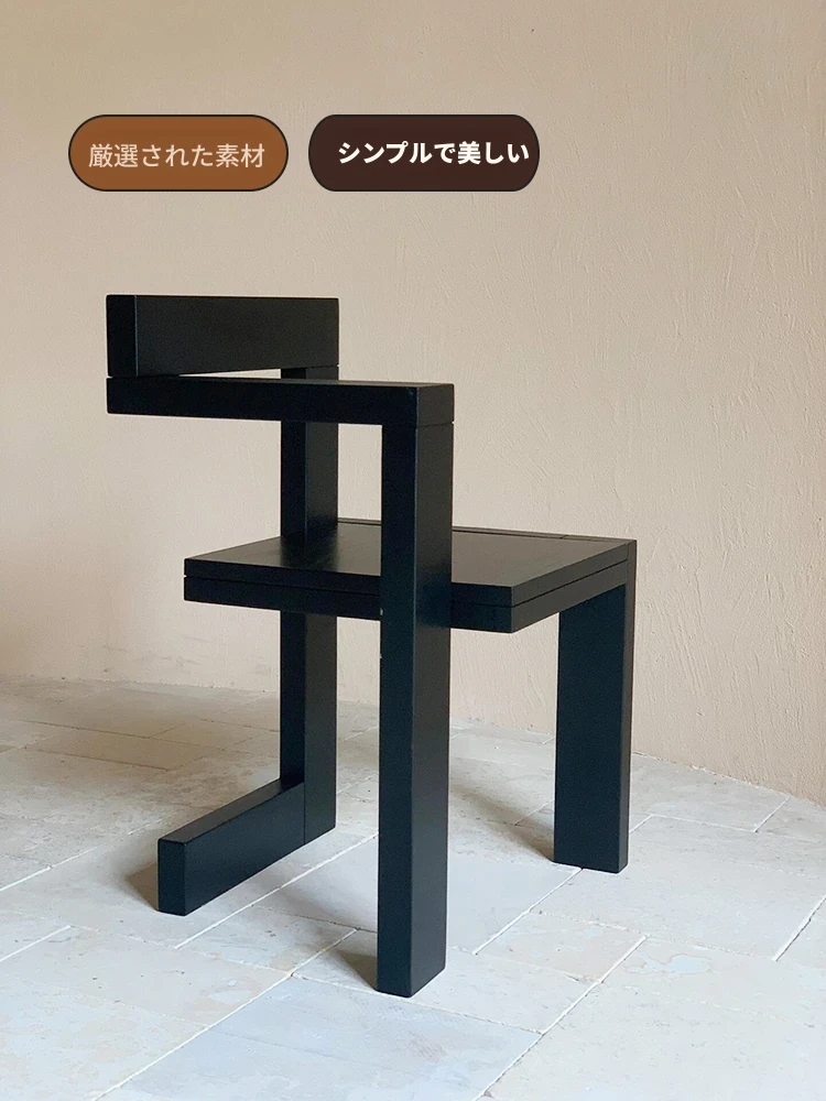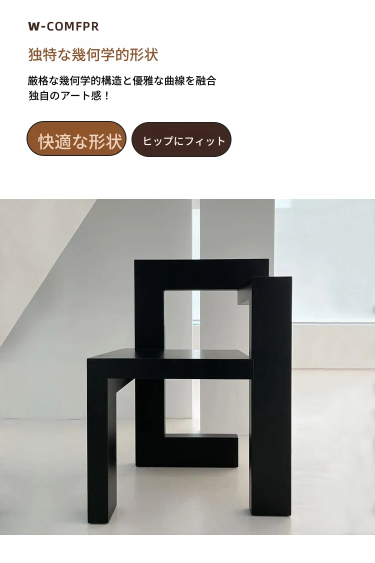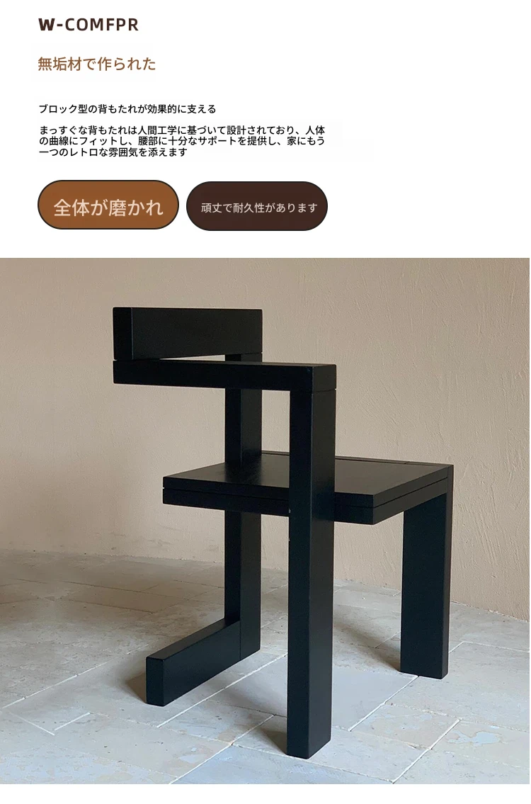 デザイナーズレトロ実木チェア|ユニークな形状のドレッサーチェア|背もたれ付きダイニング椅子|中古の侘び寂びスタイル|インテリアを引き立てるおしゃれな家庭用椅子