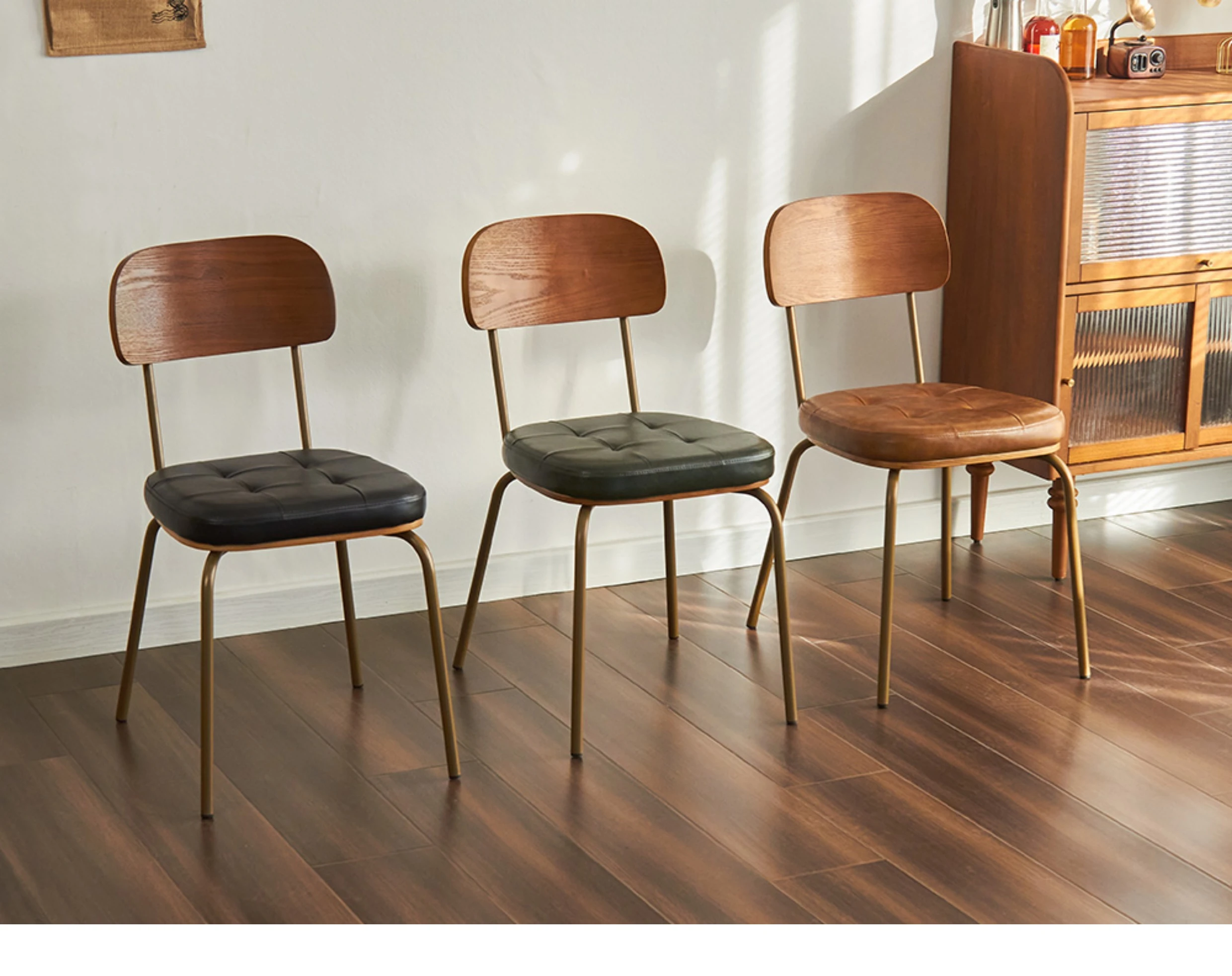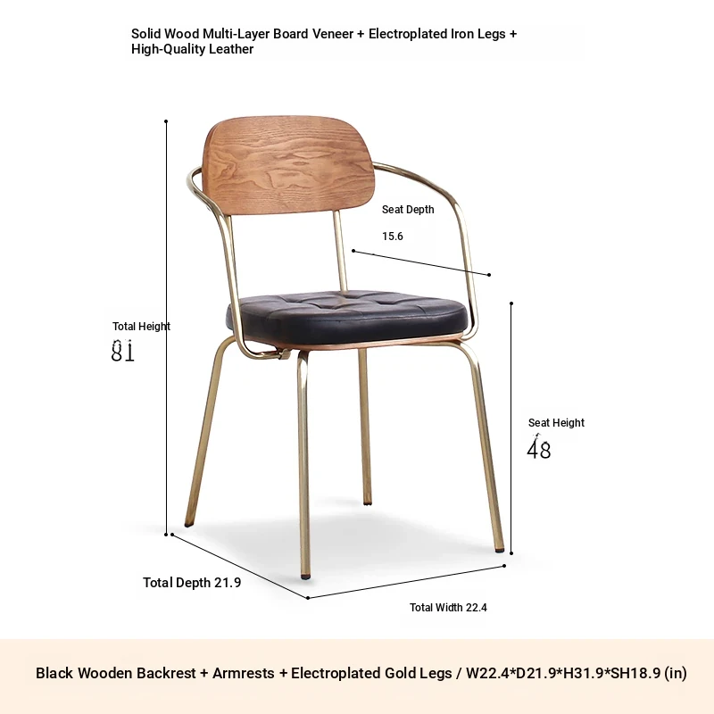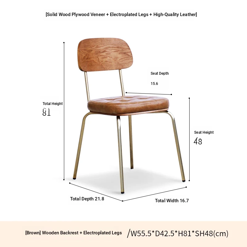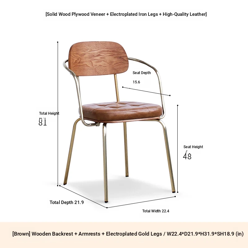 Wood-backed brown PU plated gold legs