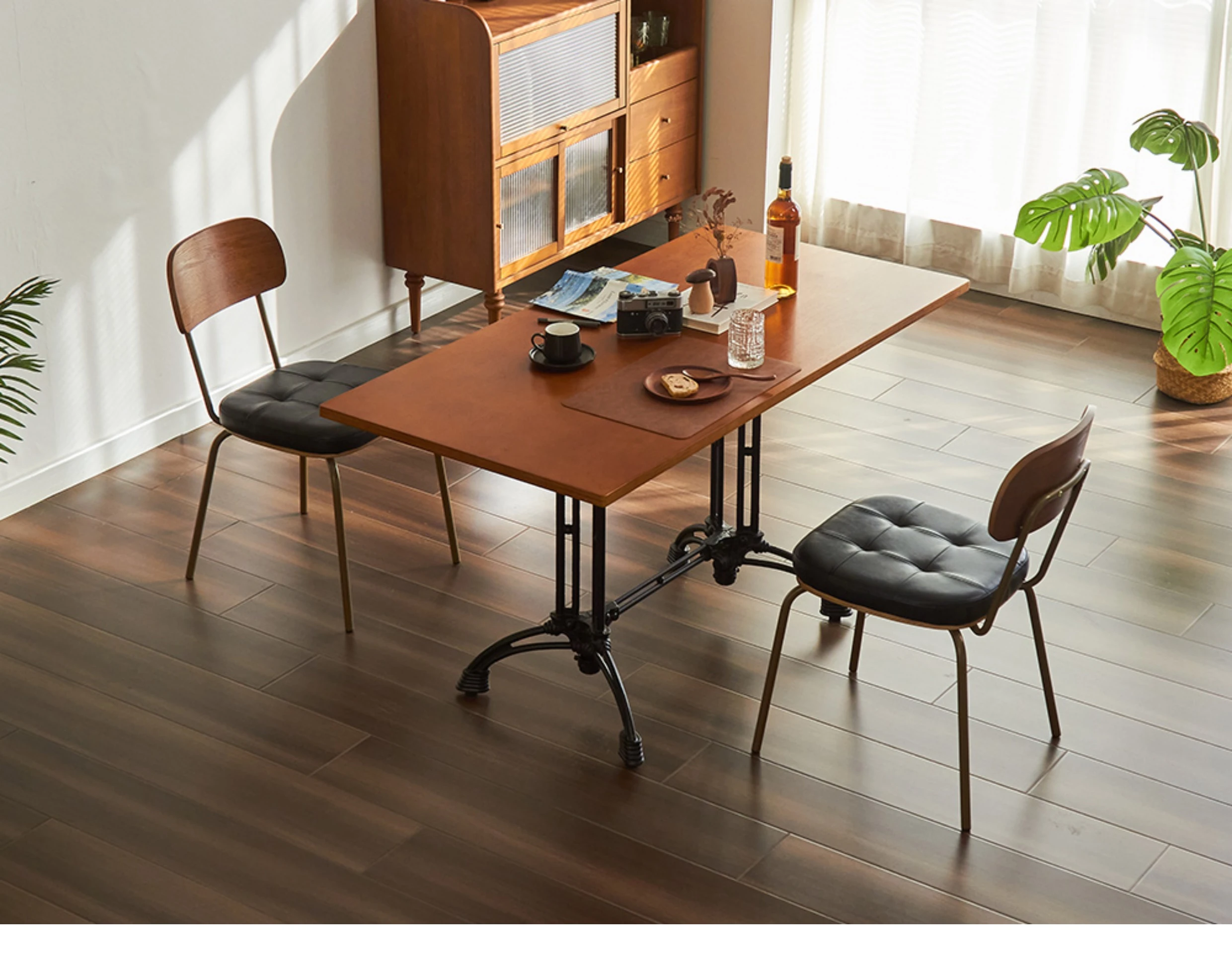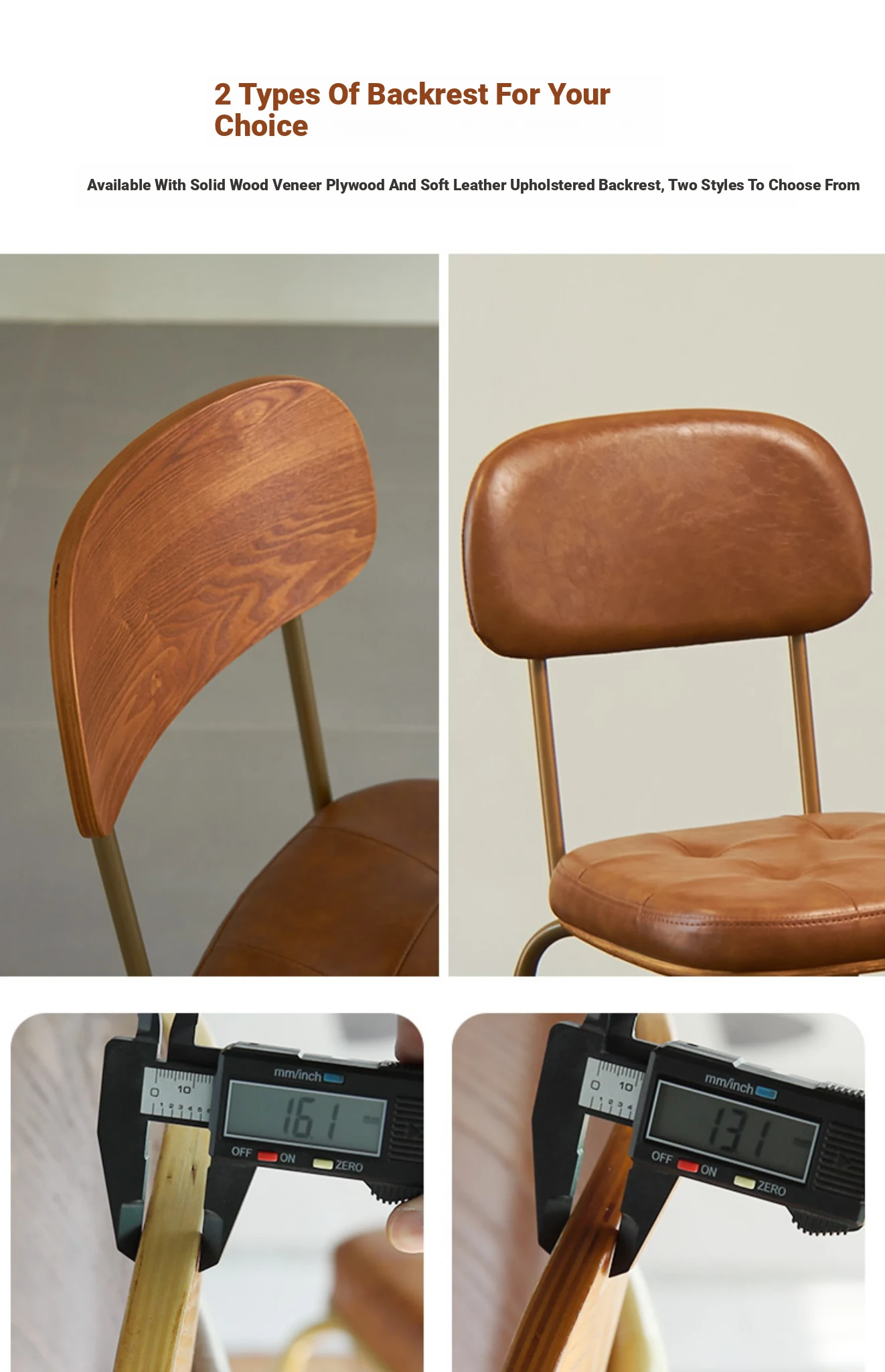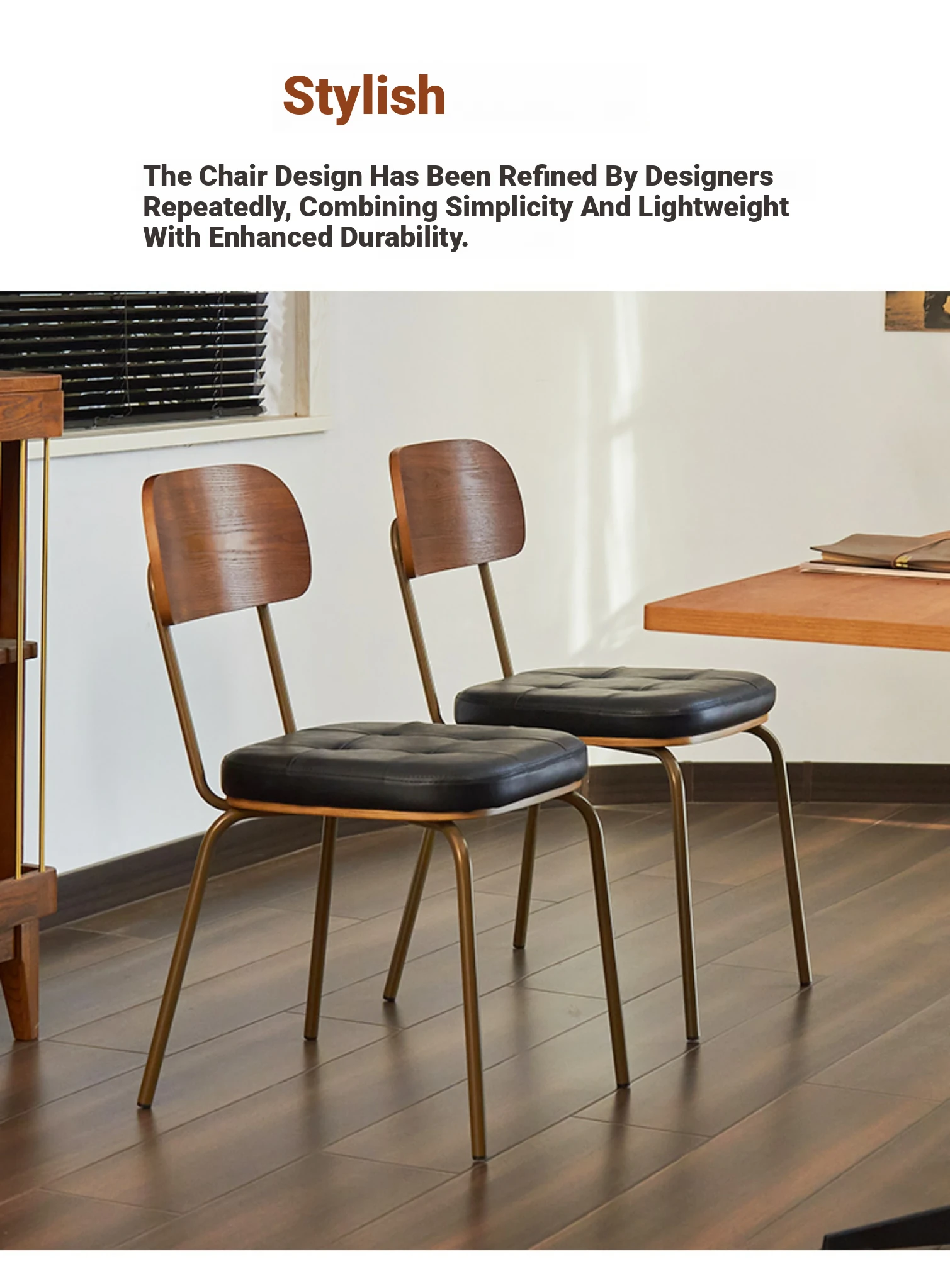 Wood-backed brown PU plated gold legs