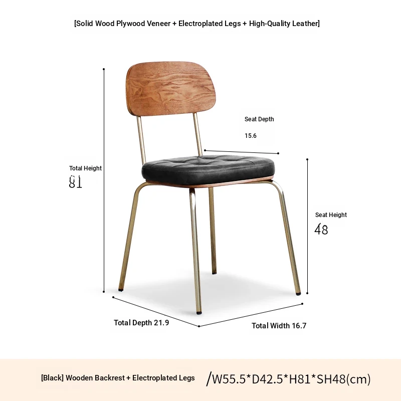 Wooden back black PU plated gold legs