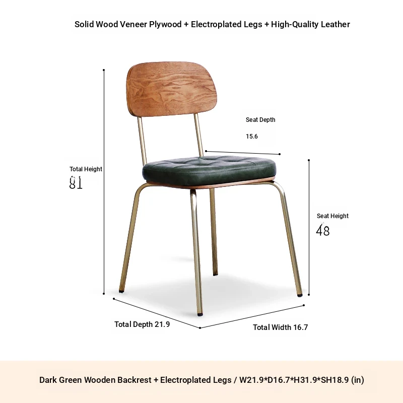 Wooden back ink green PU electroplated gold leg