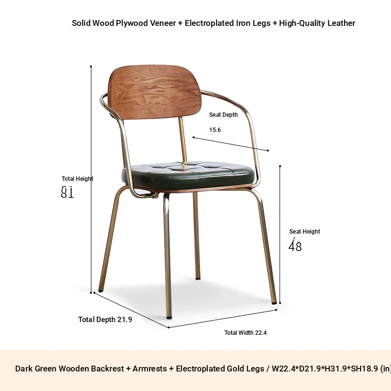 Wooden back ink green PU galvanized gold armrest