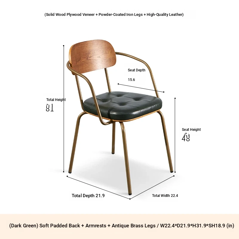Wooden back ink green pu ancient copper gold armrest
