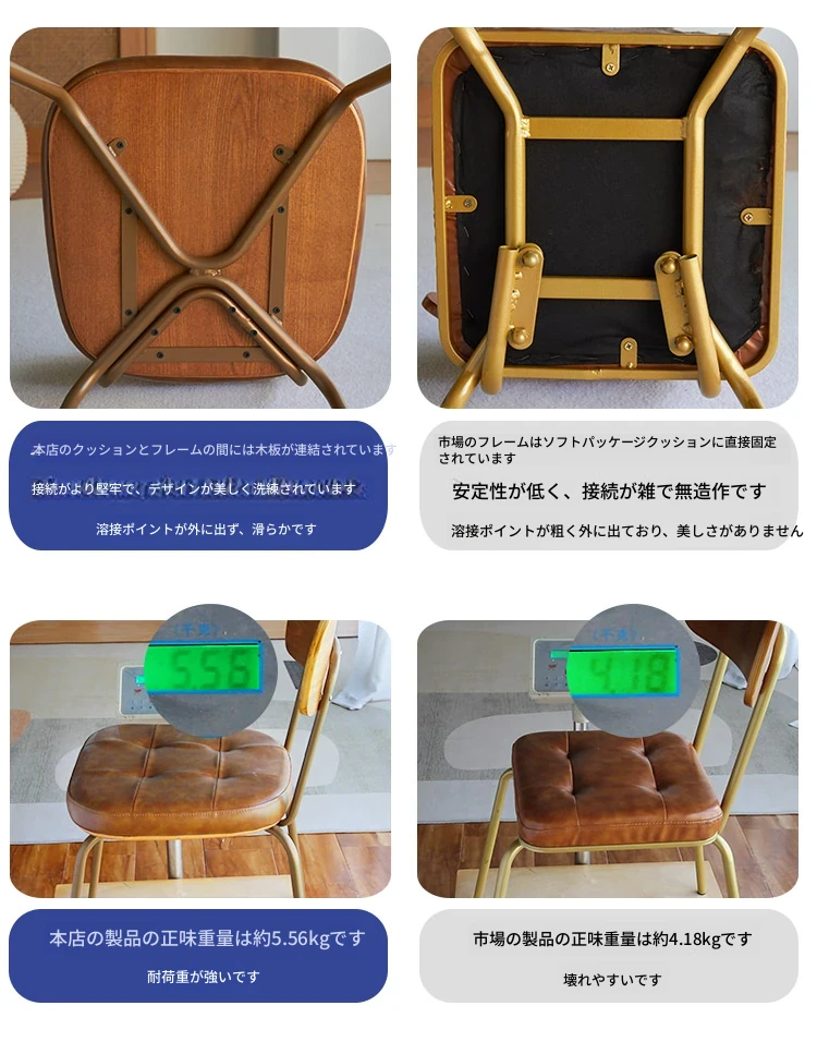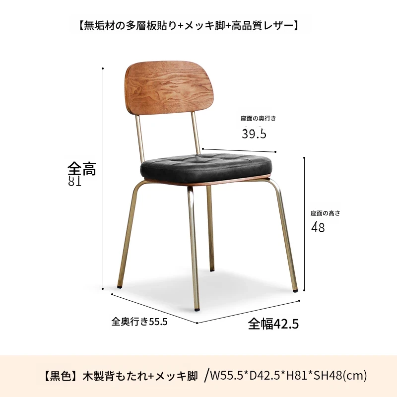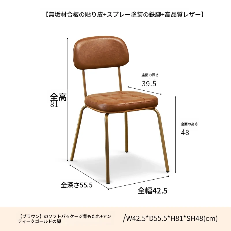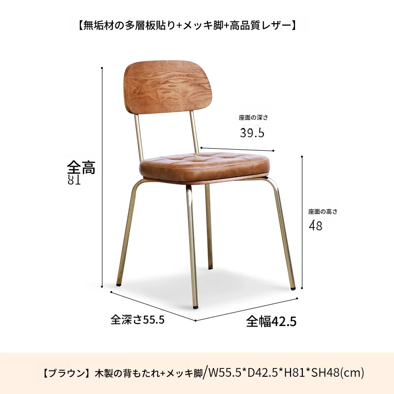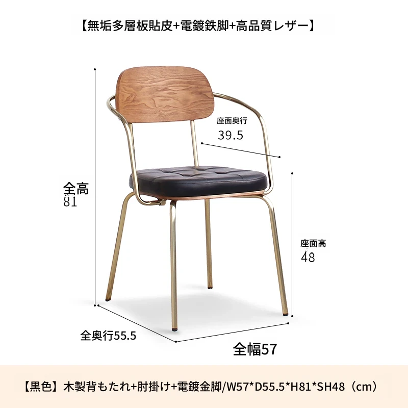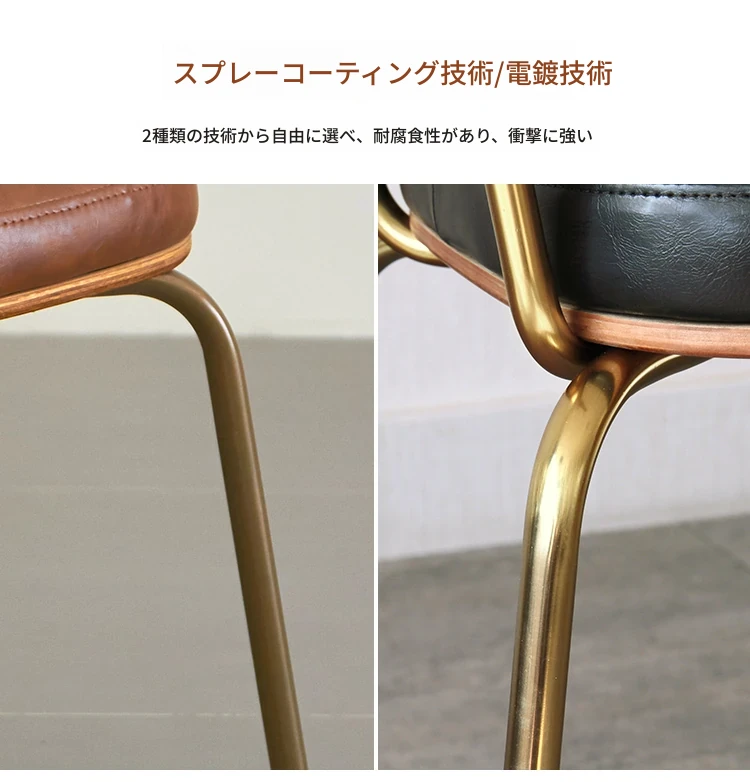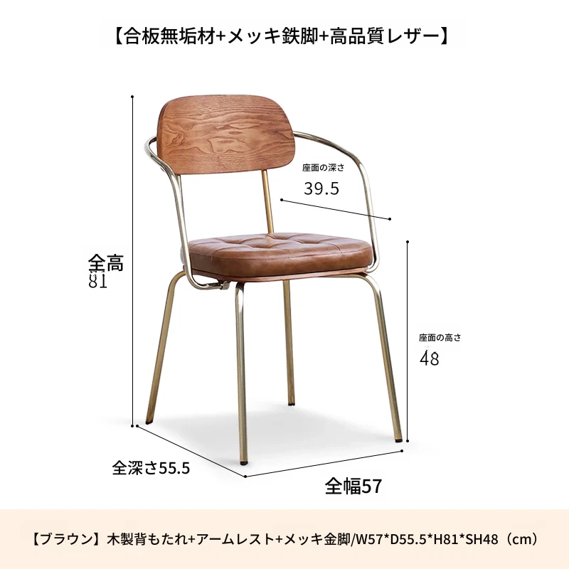 木製背もたれブラウンPUメッキゴールドアームレスト