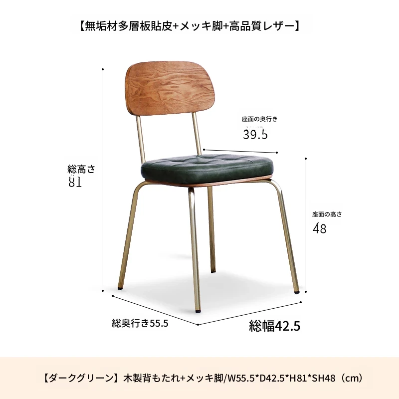 木製背もたれダークグリーンPUメッキゴールドアームレスト