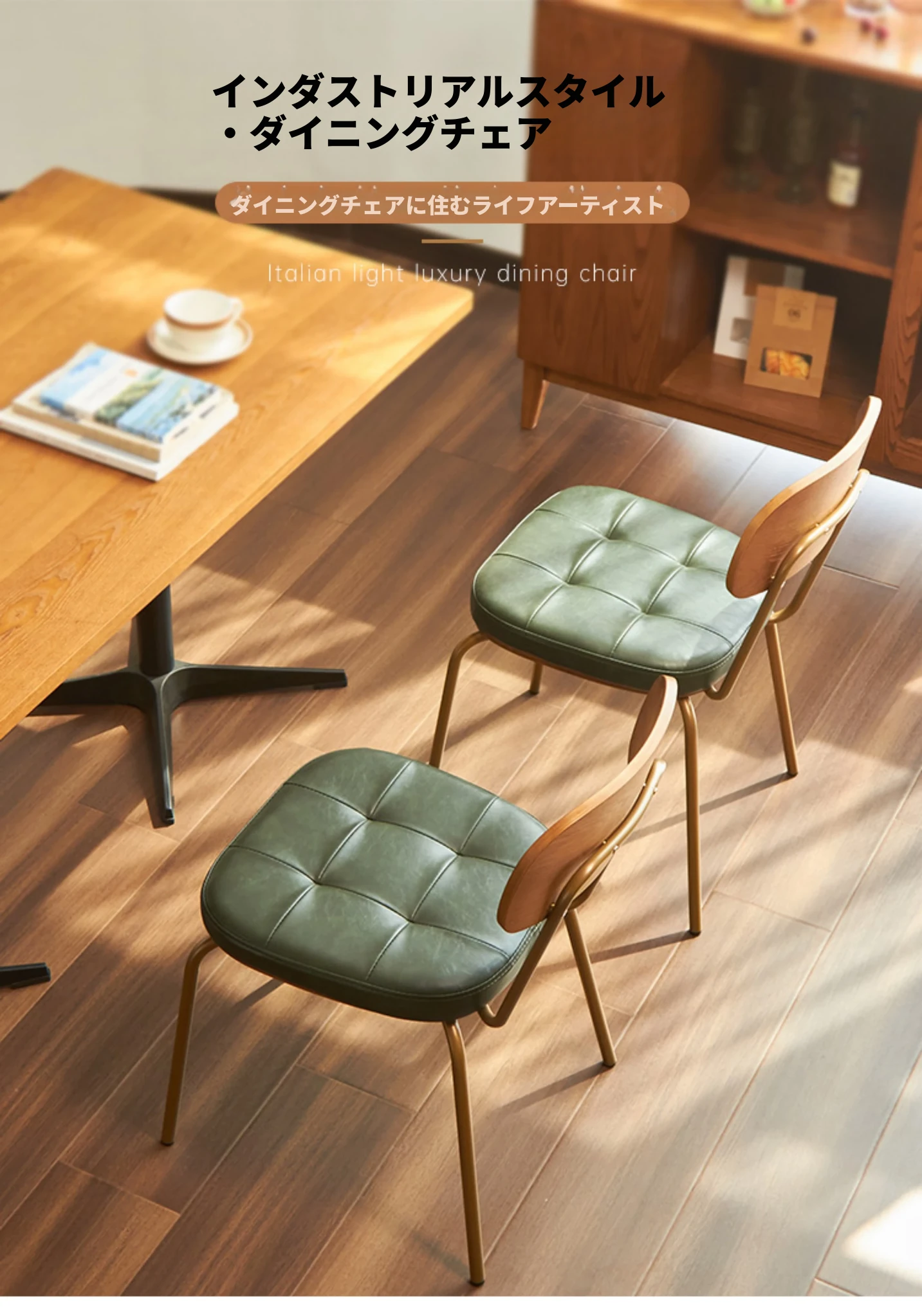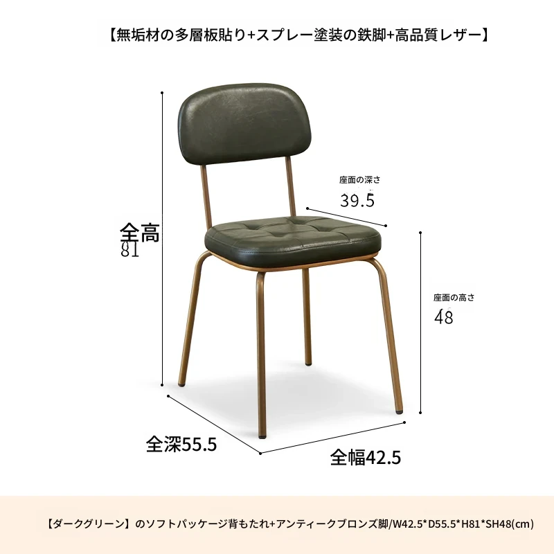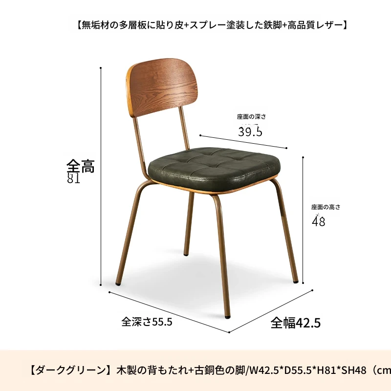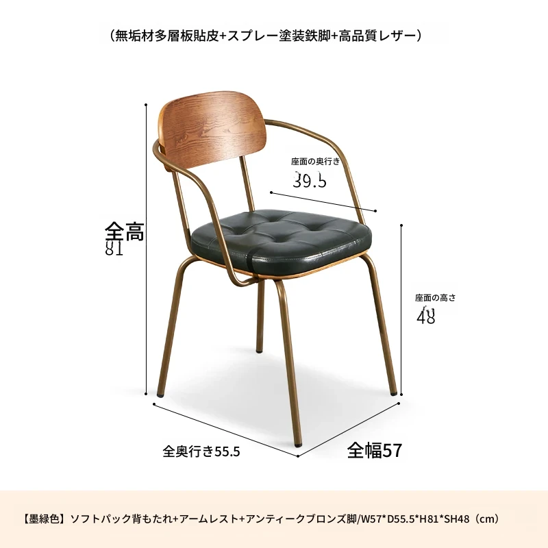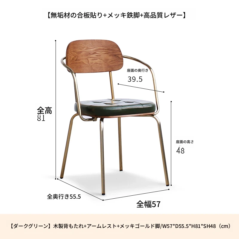 木製背もたれダークグリーンPUブロンズゴールドアームレスト