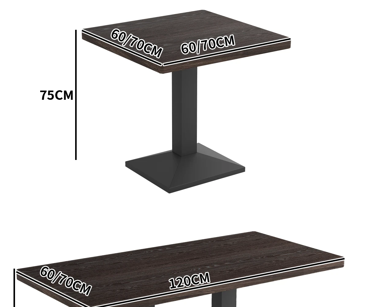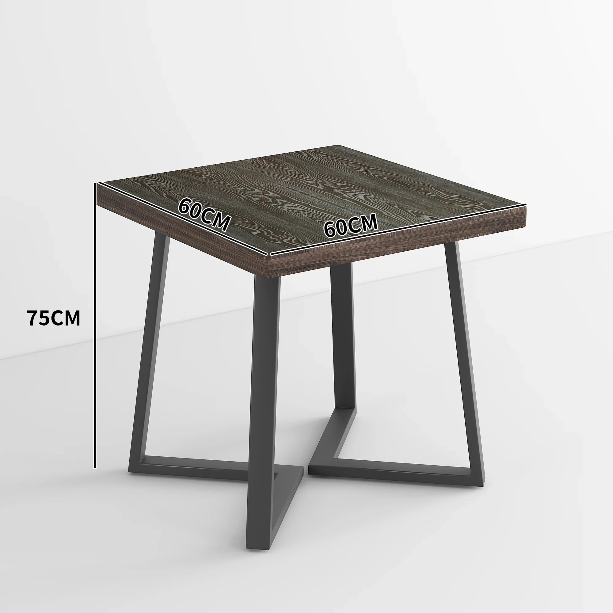 60x60【黒鉄フレーム】コーヒー色スクエアテーブル 厚手の天板