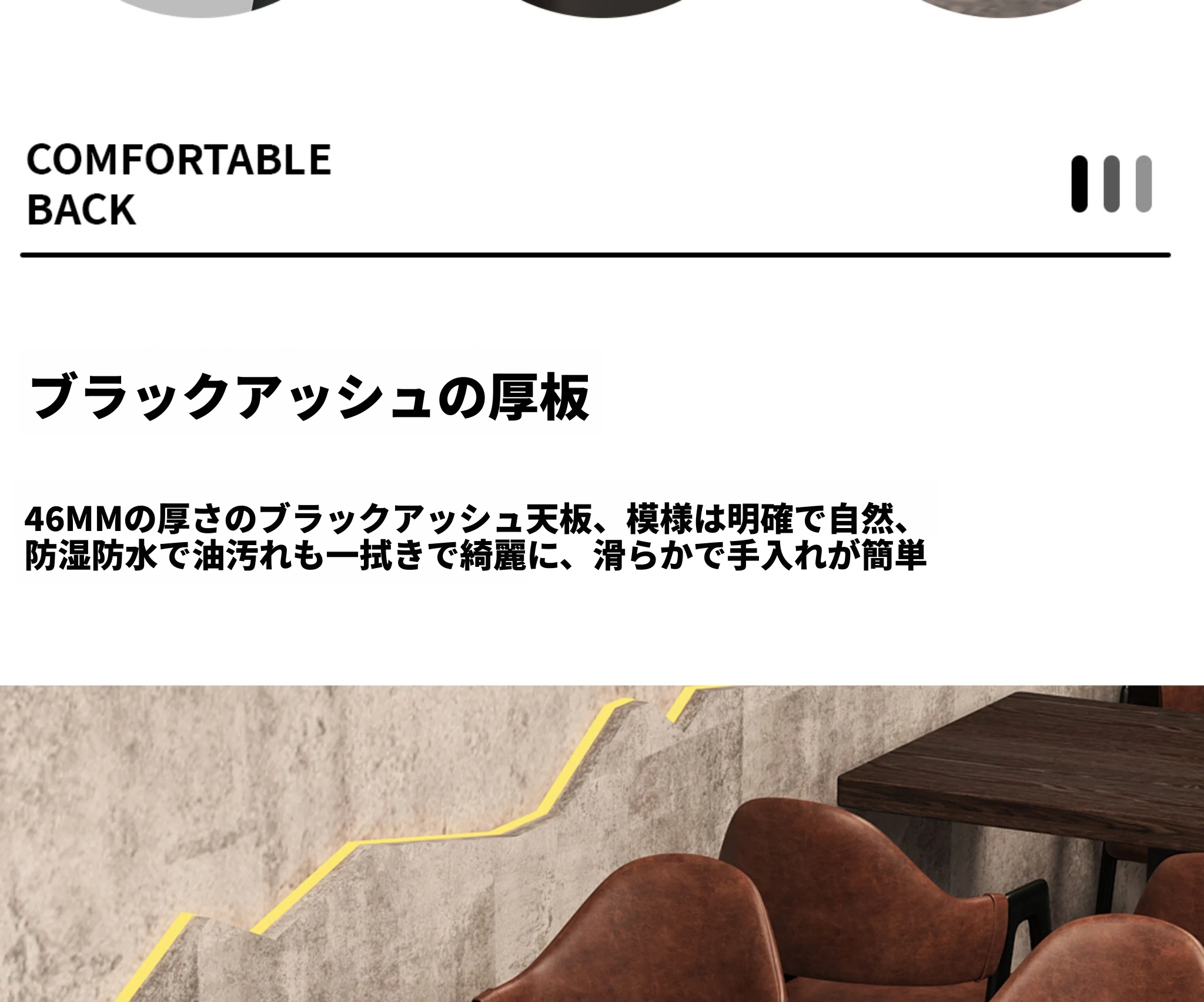 120x60【黒鉄フレーム】コーヒー色ロングテーブル 厚手の天板