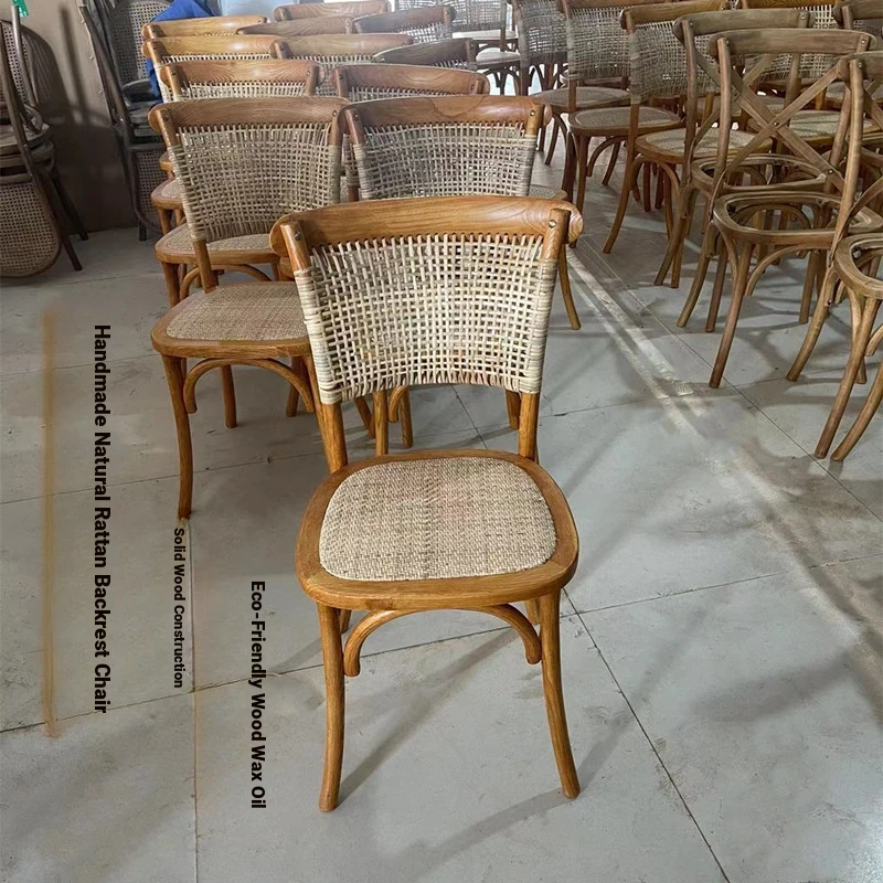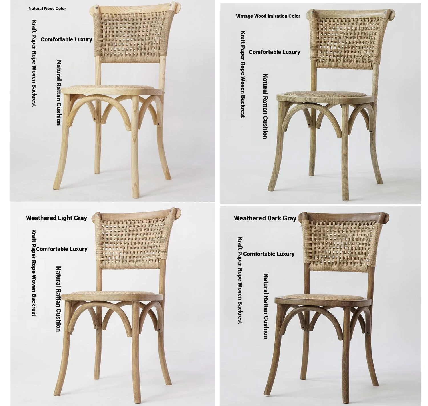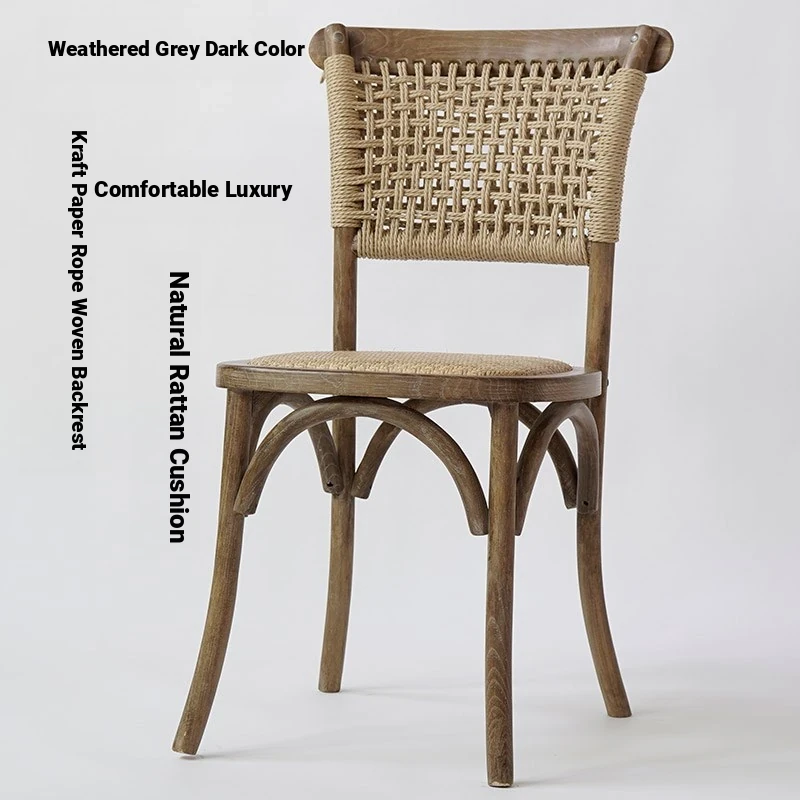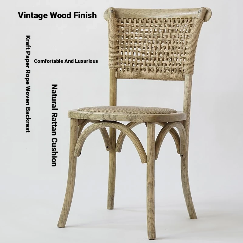Vintage Solid Wood Dining Chair with Backrest - French Country Style Distressed Dining Table Chair for Home and Commercial Use, Perfect for Rustic Dining Experiences