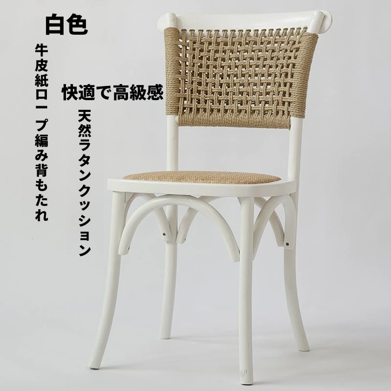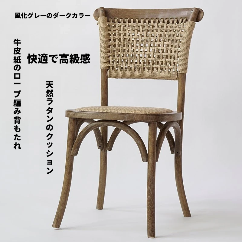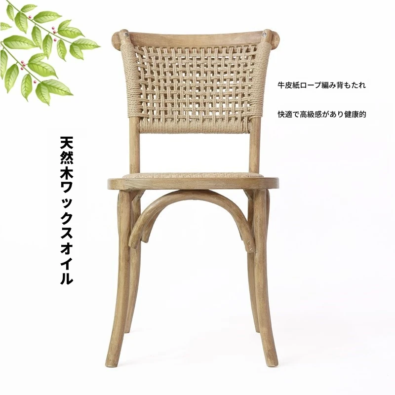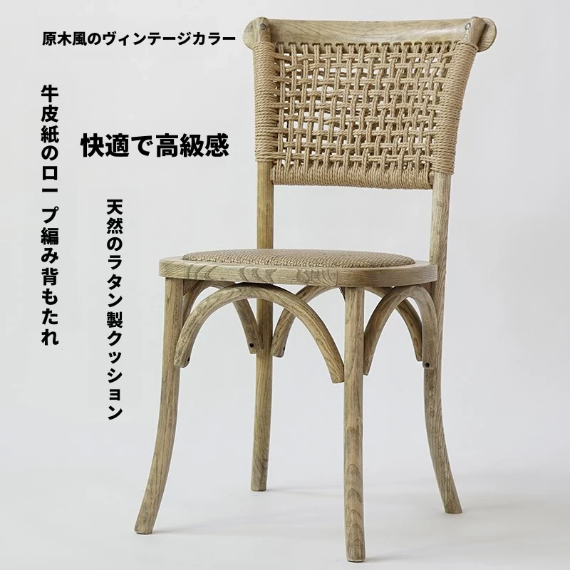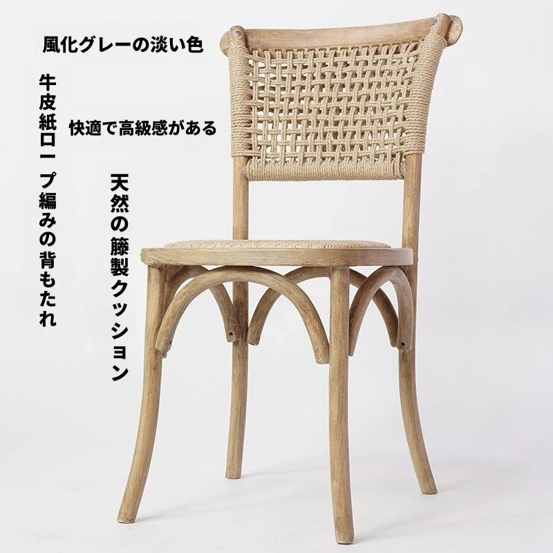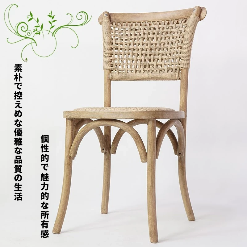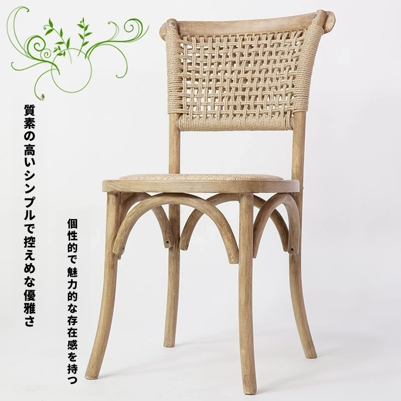 レトロスタイルの無垢材ダイニングチェア|背もたれ付き|家庭用フレンチアンティーク風|ヴィンテージ感漂うカントリースタイル|飲食店にも最適な商業用チェア