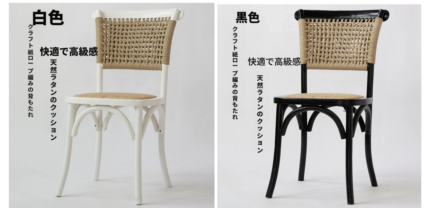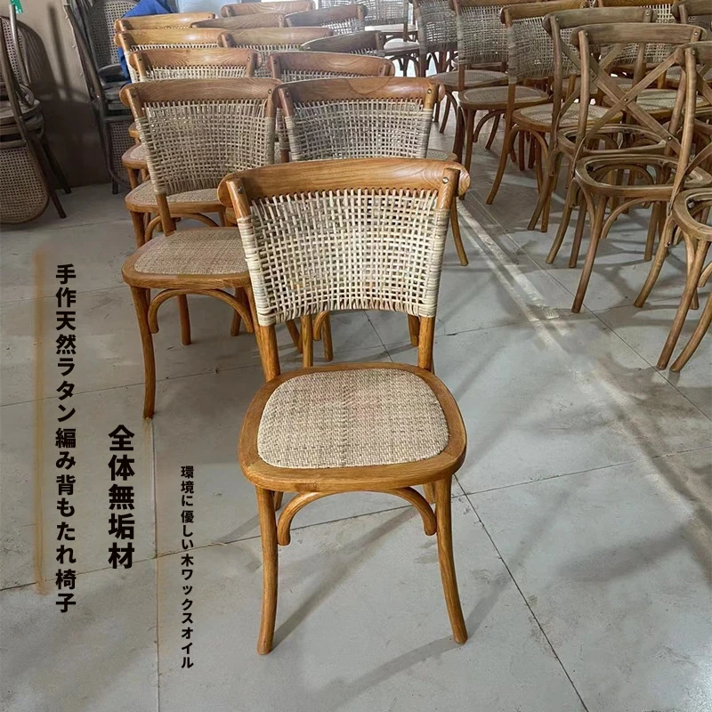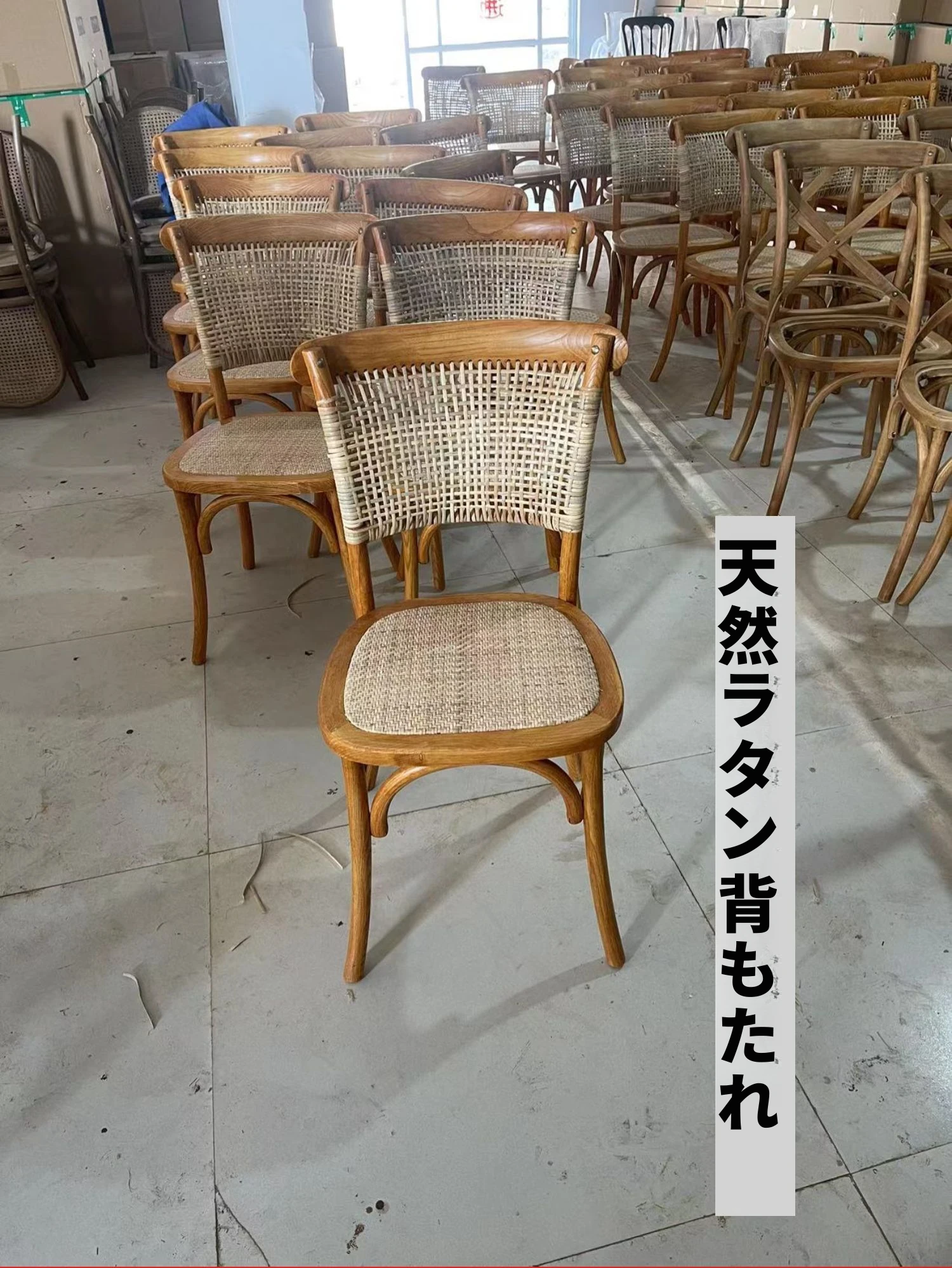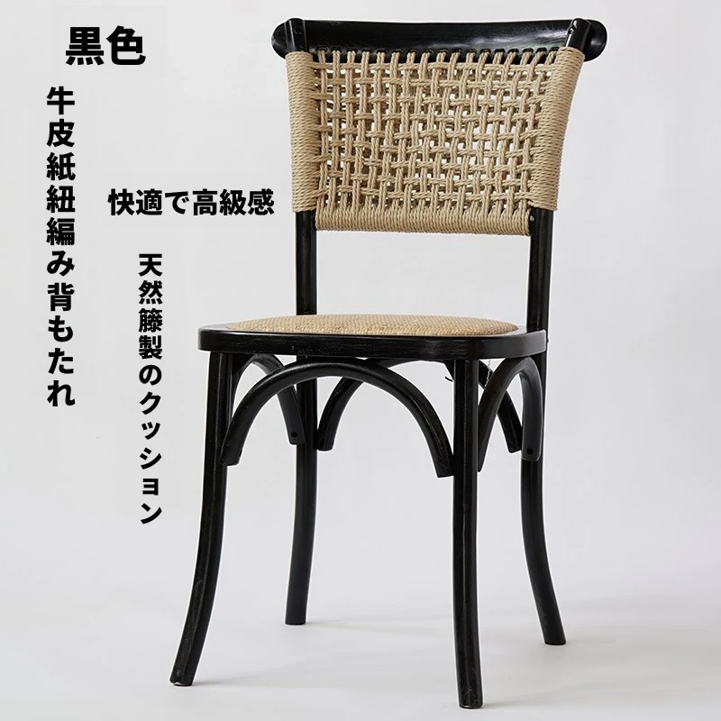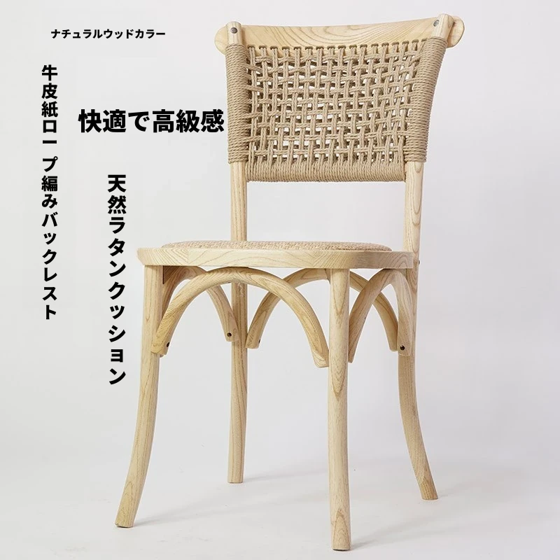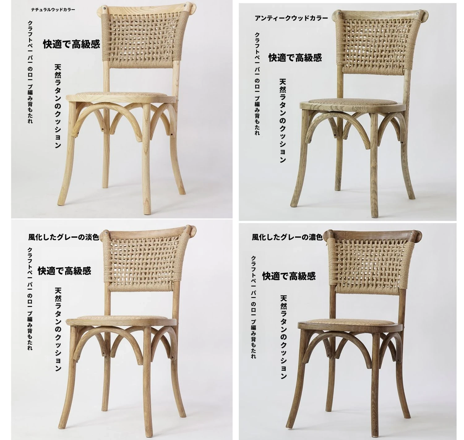 レトロスタイルの無垢材ダイニングチェア|背もたれ付き|家庭用フレンチアンティーク風|ヴィンテージ感漂うカントリースタイル|飲食店にも最適な商業用チェア