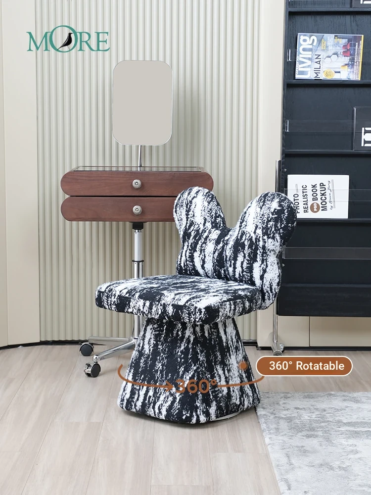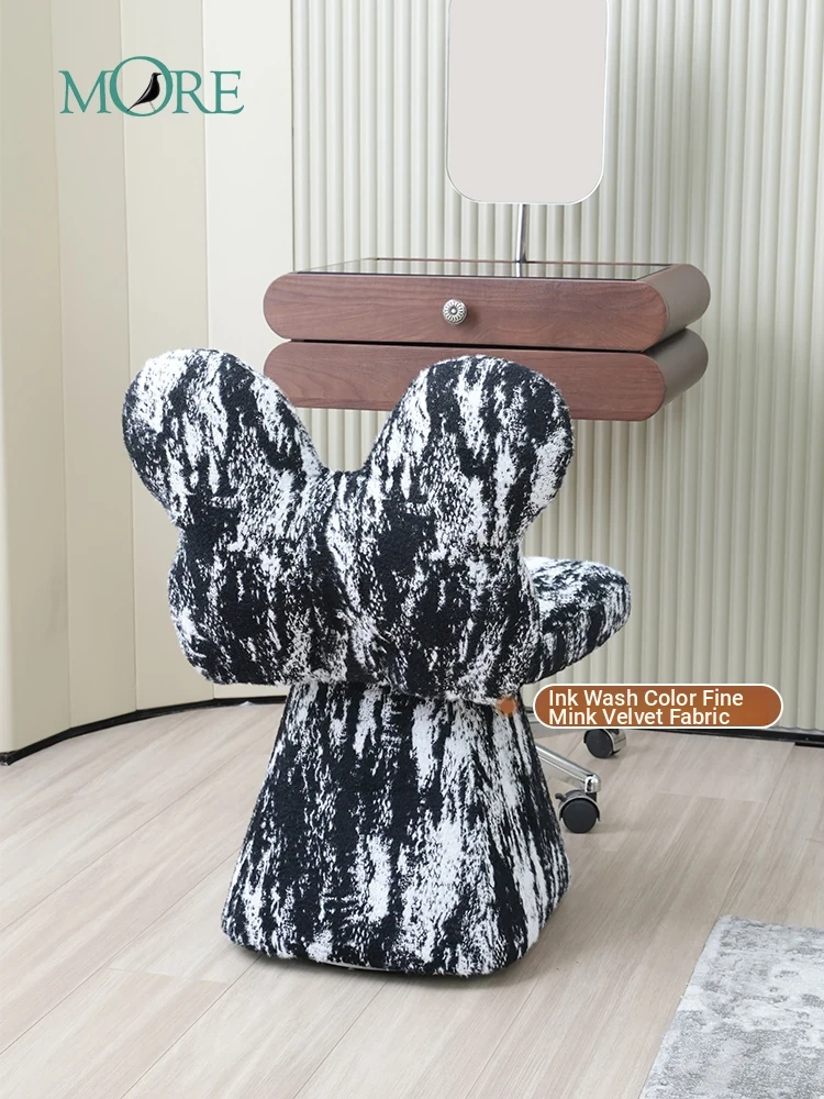 Vintage-Inspired Luxury Makeup Stool - Original Butterfly Chair with Elegant Ink Wash Design, Perfect for Your Bedroom Vanity, Rotatable and Stylish!