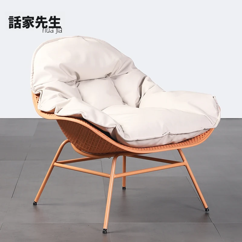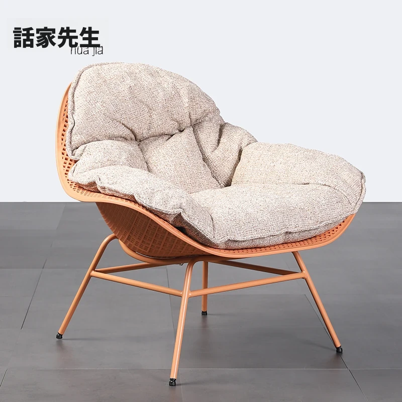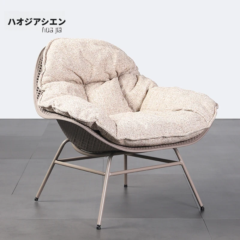 アプリコットブラウンの1人用椅子(暖かいグレーの粗麻クッション付き)