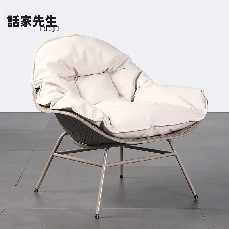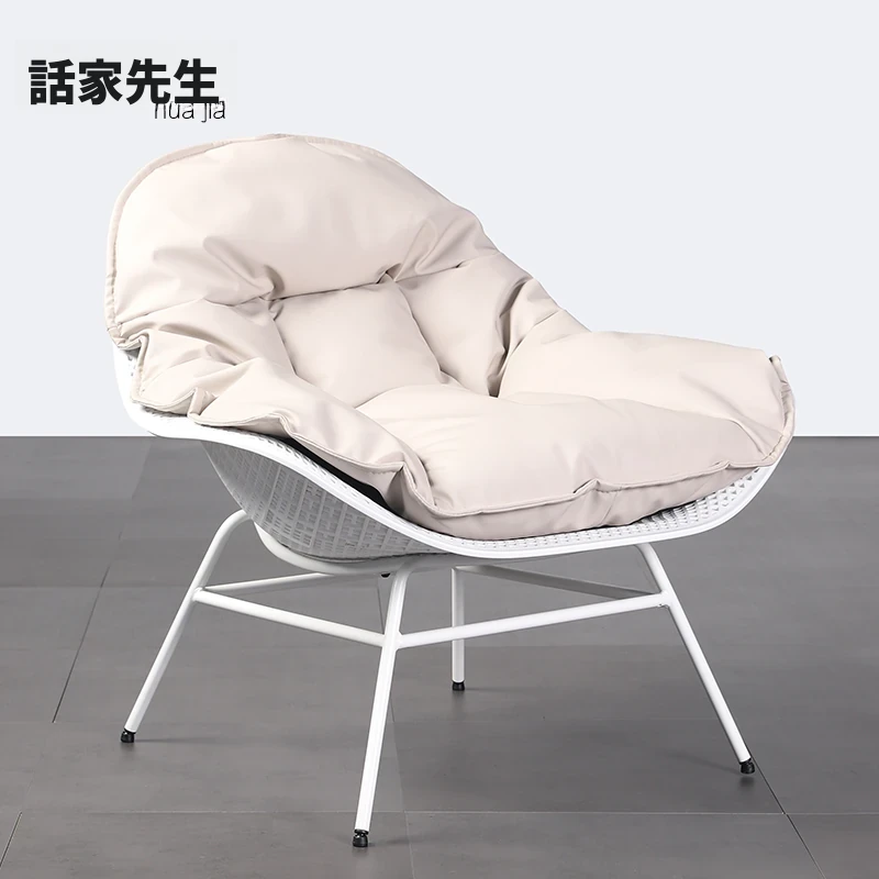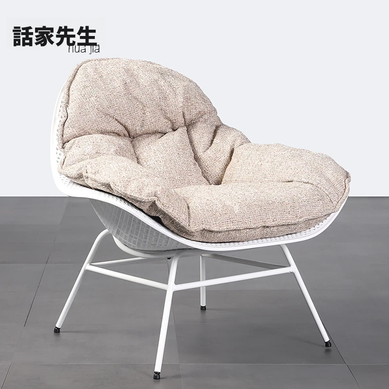 白色1人用椅子(暖かいグレーの粗麻クッション付き)