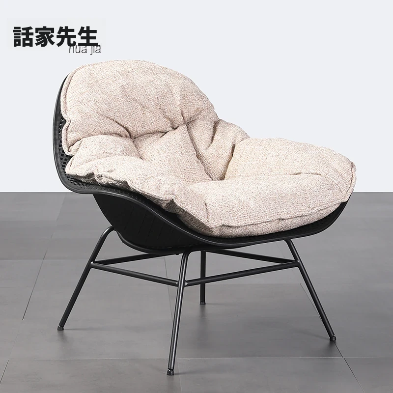 黒色1人用椅子(暖かいグレーの粗麻クッション付き)