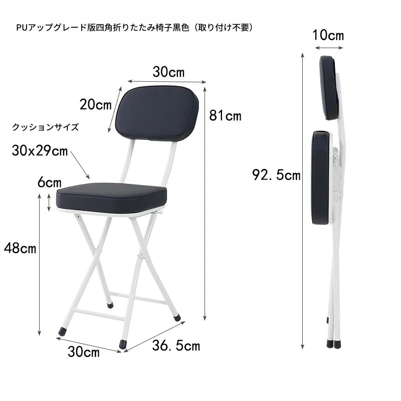 アップグレード版四角折りたたみチェア ブラック(組み立て不要)