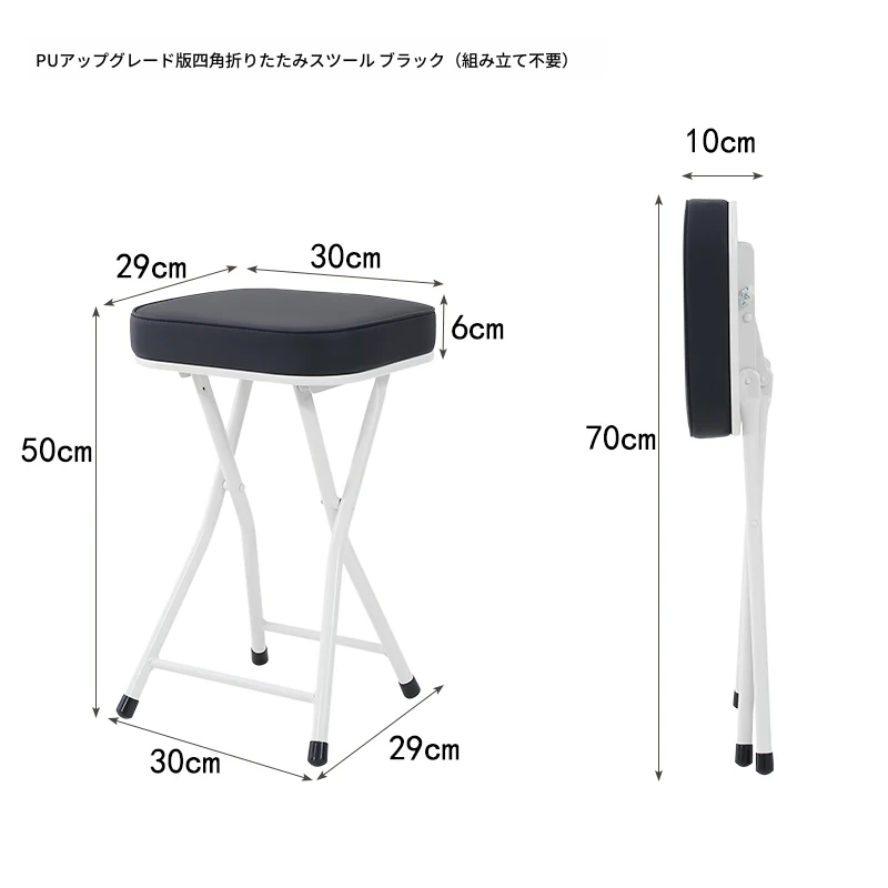 アップグレード版四角折りたたみ椅子 ブラック(組み立て不要)