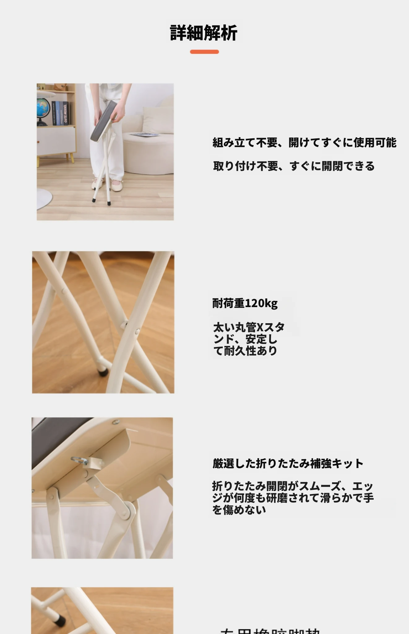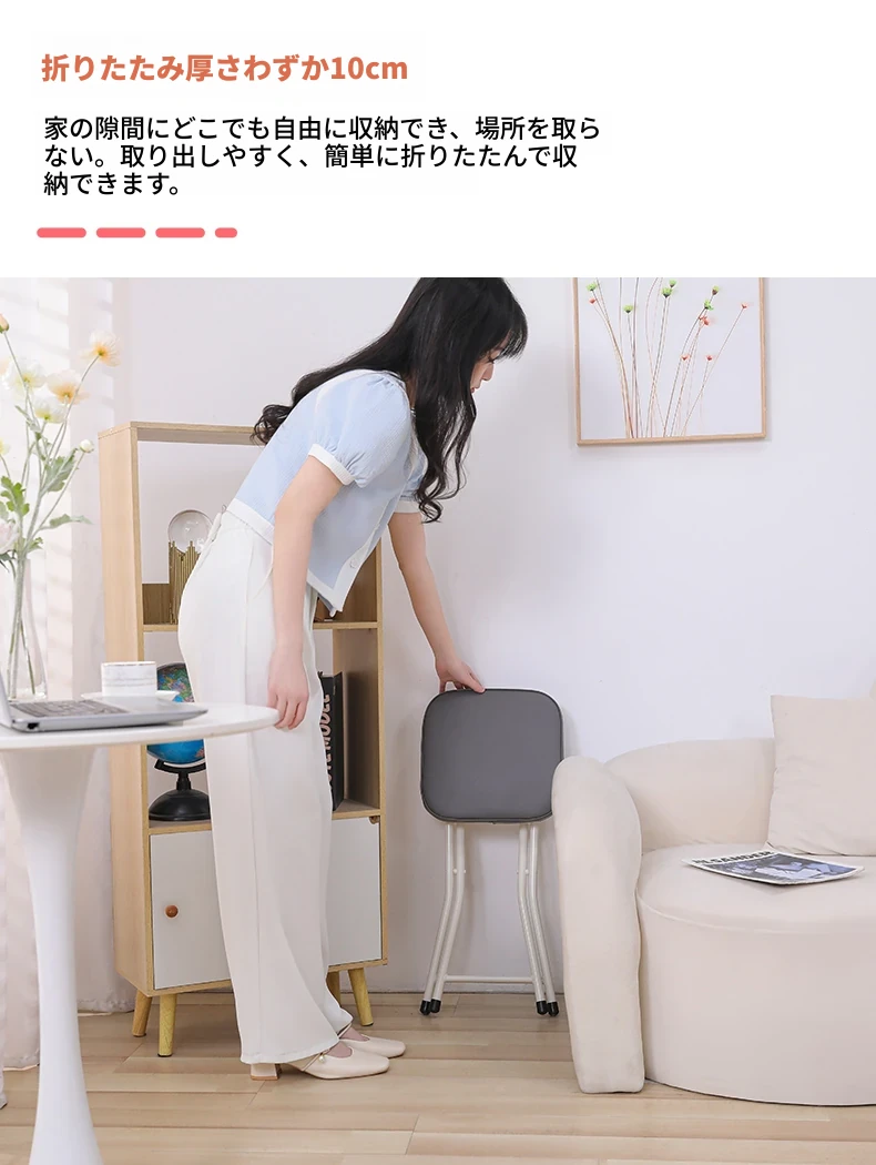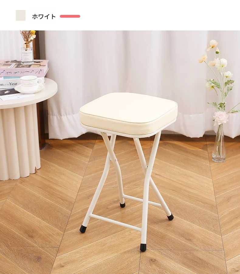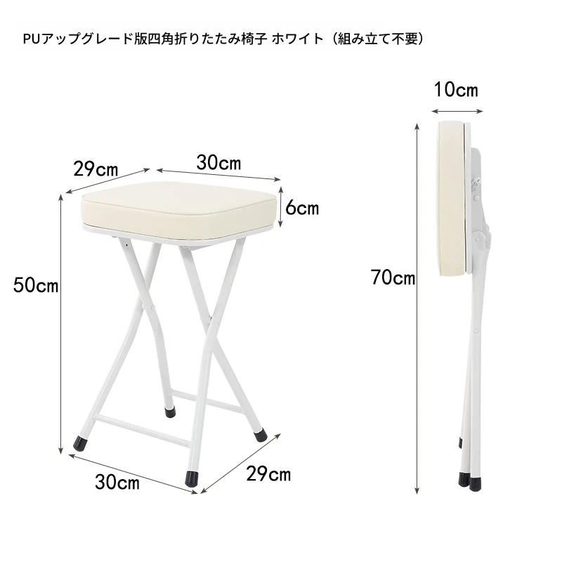 アップグレード版四角折りたたみ椅子 ホワイト(組み立て不要)