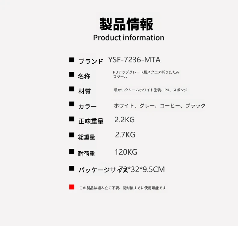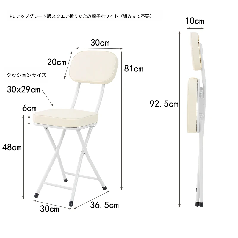 アップグレード版四角折りたたみチェア ホワイト(組み立て不要)