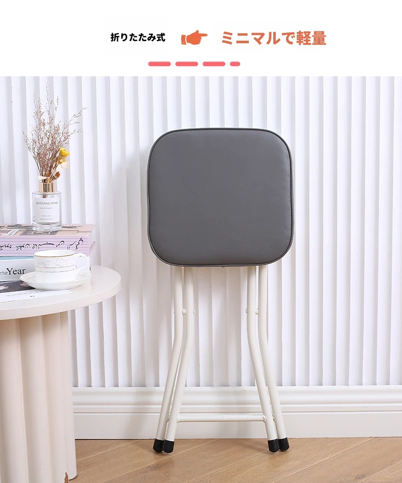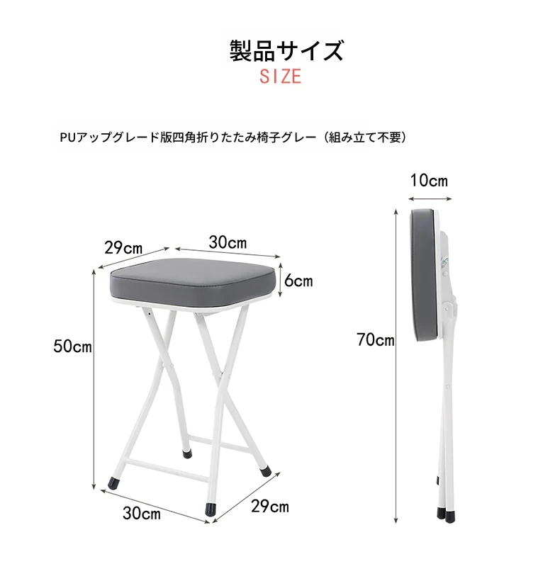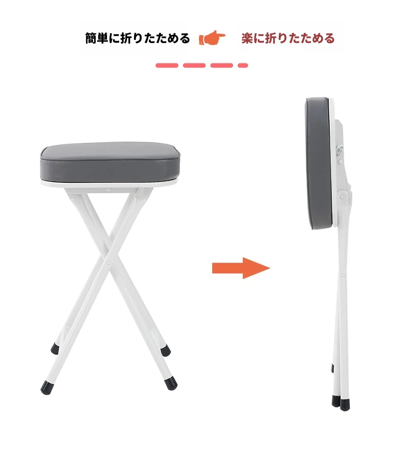 アップグレード版四角折りたたみ椅子 グレー(組み立て不要)