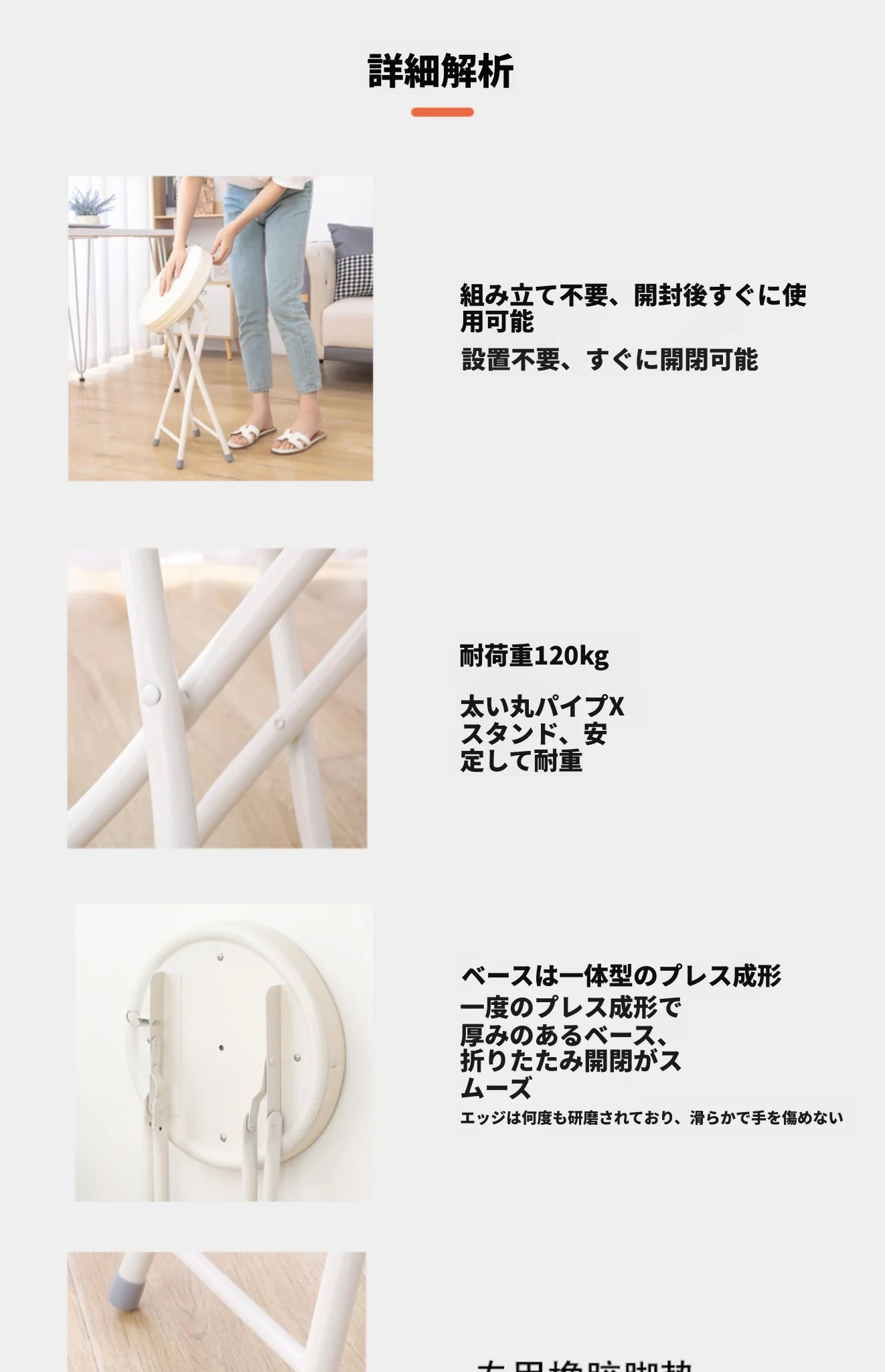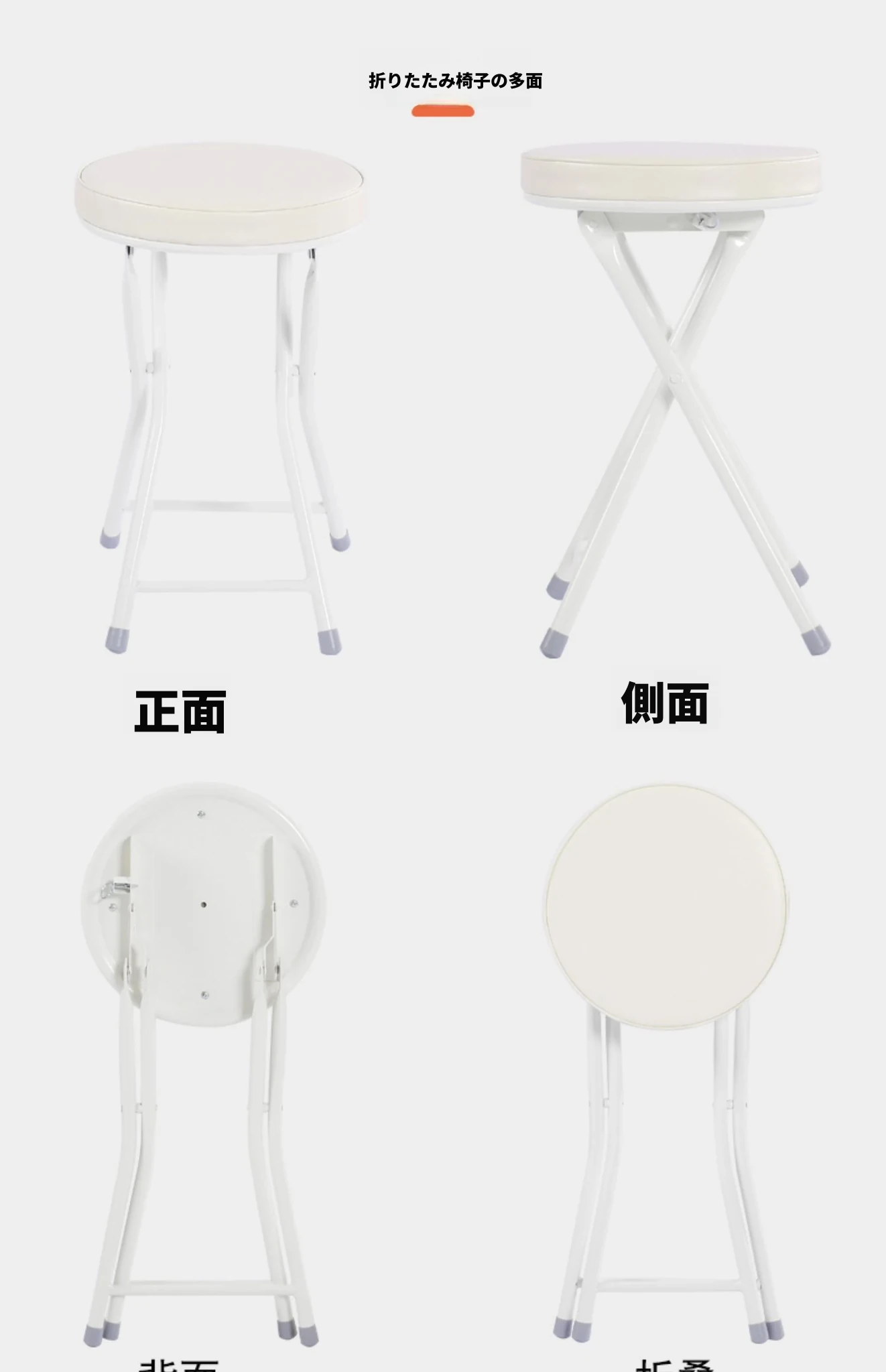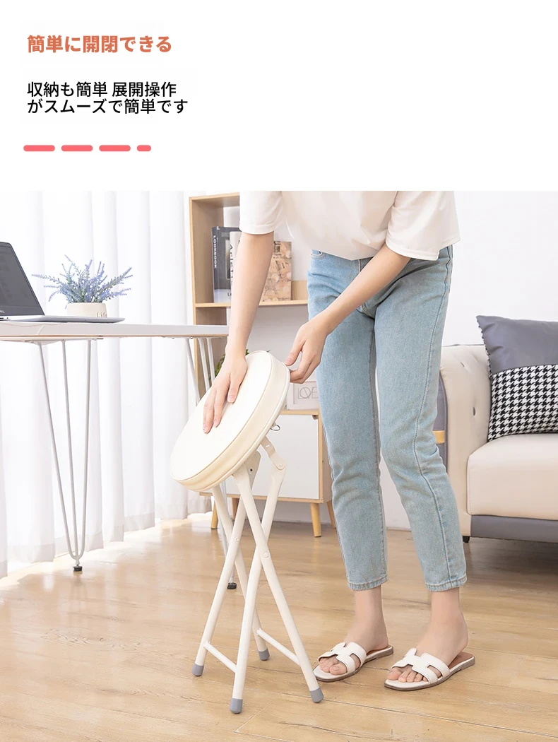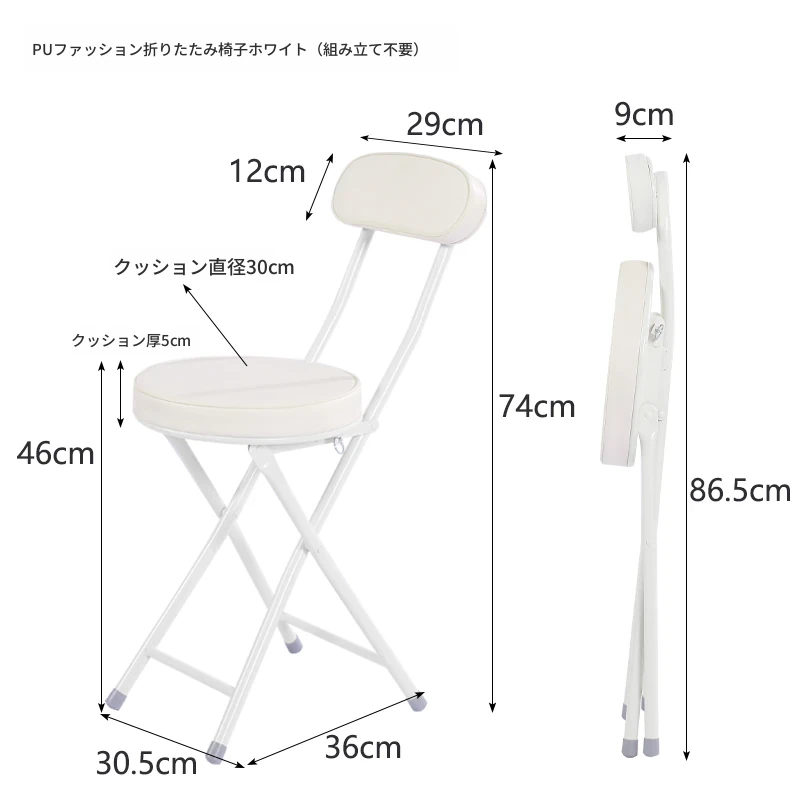 PUファッショナブル折りたたみチェア ホワイト(組み立て不要)