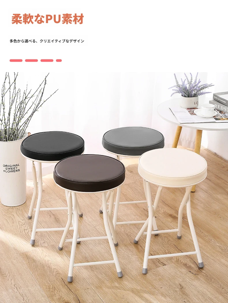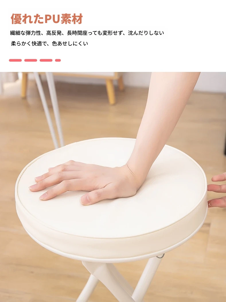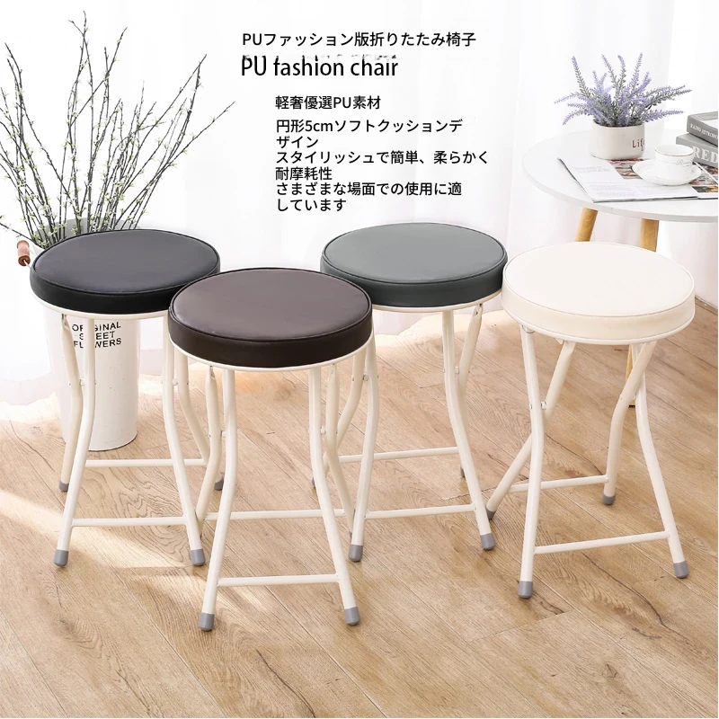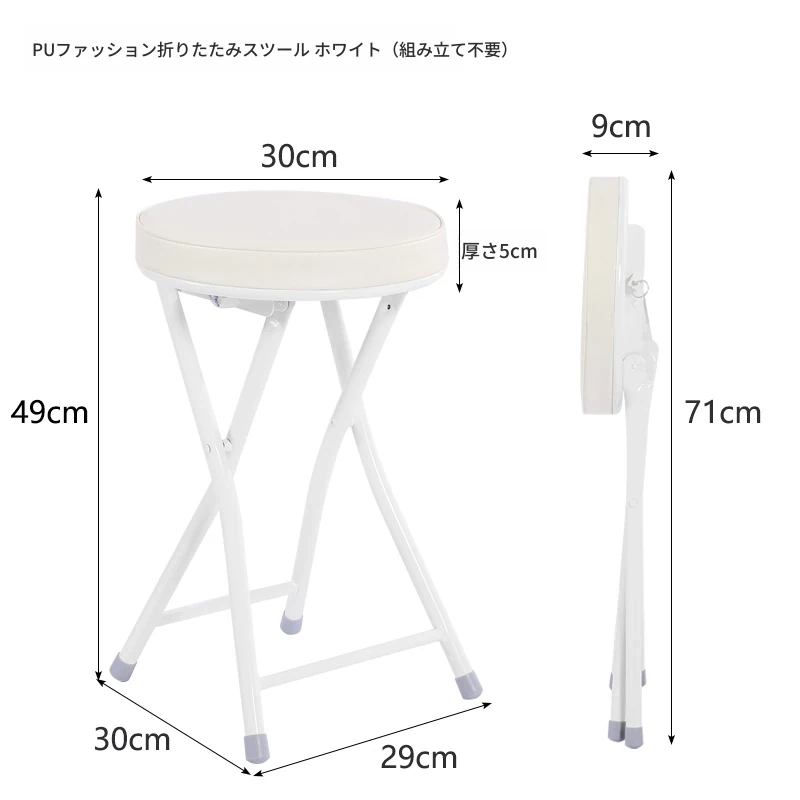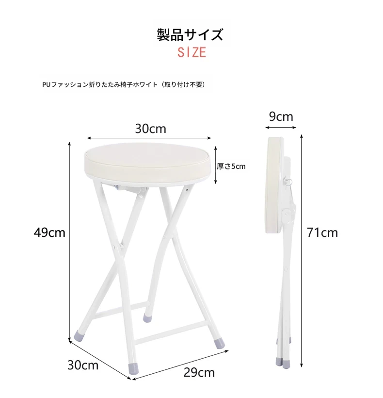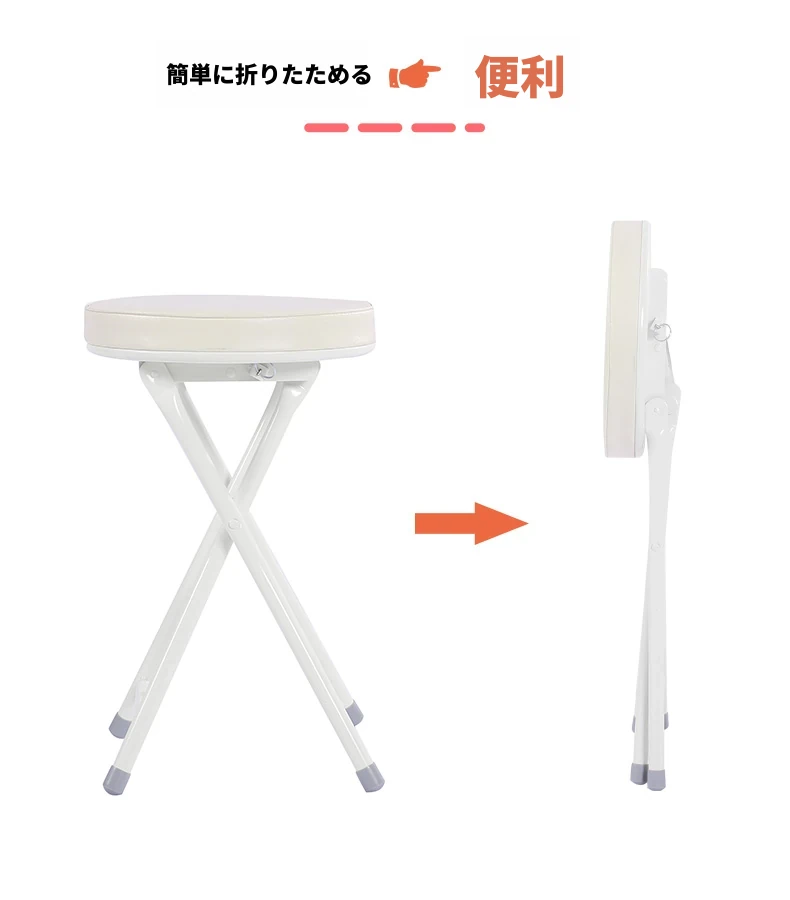 PUファッショナブル折りたたみ椅子 ホワイト(組み立て不要)