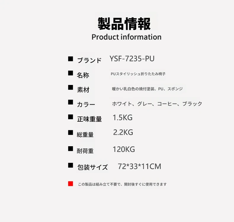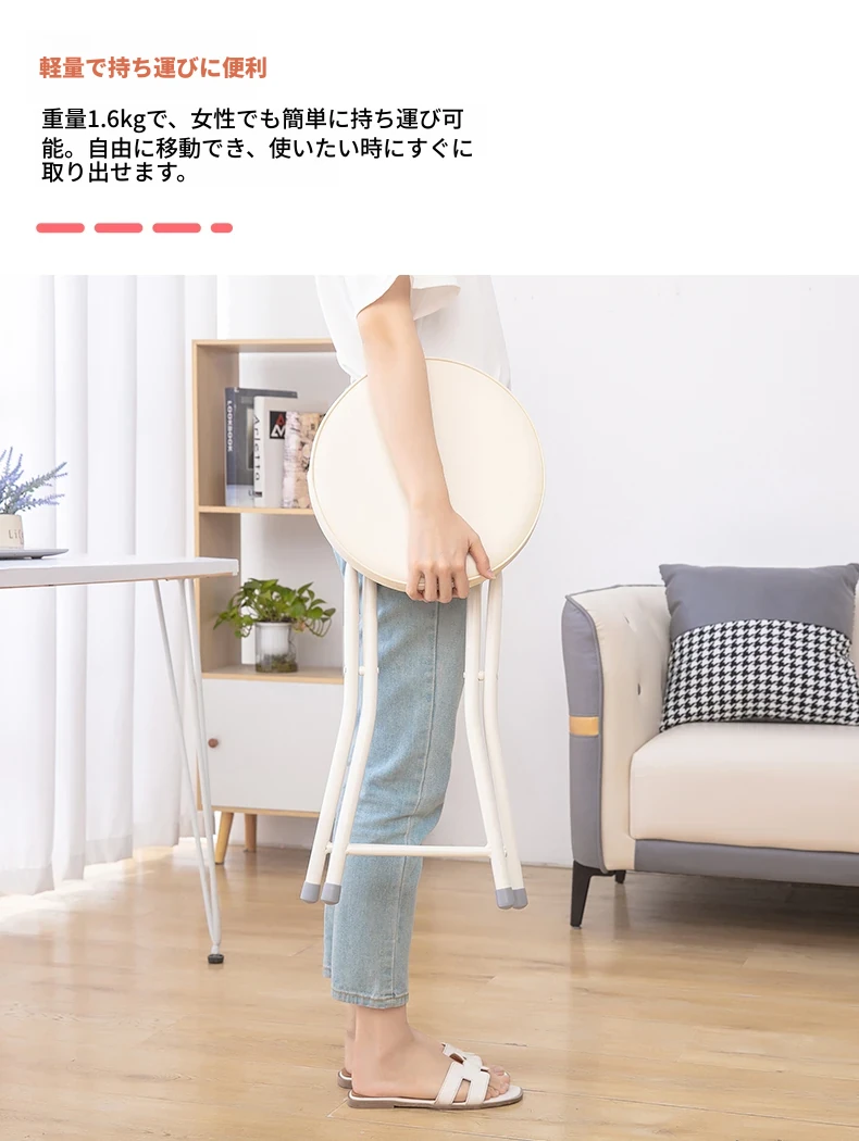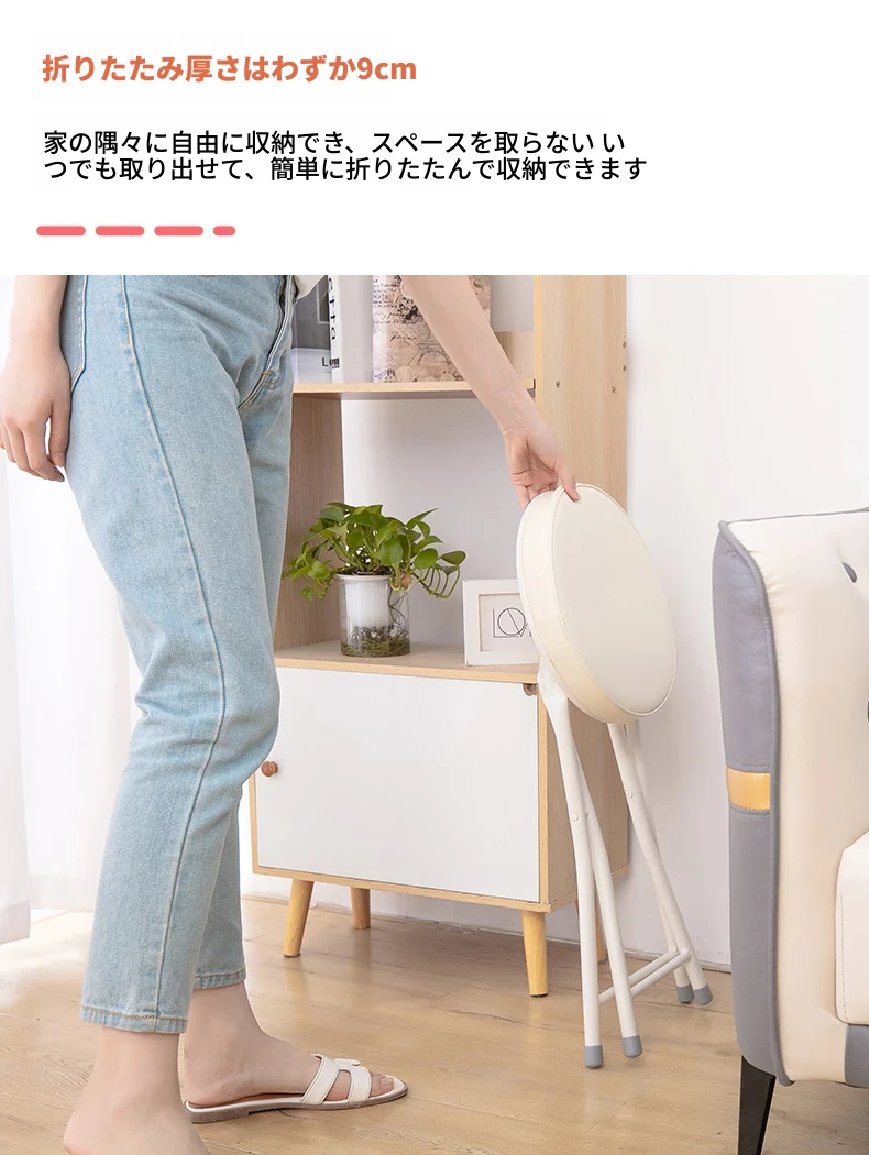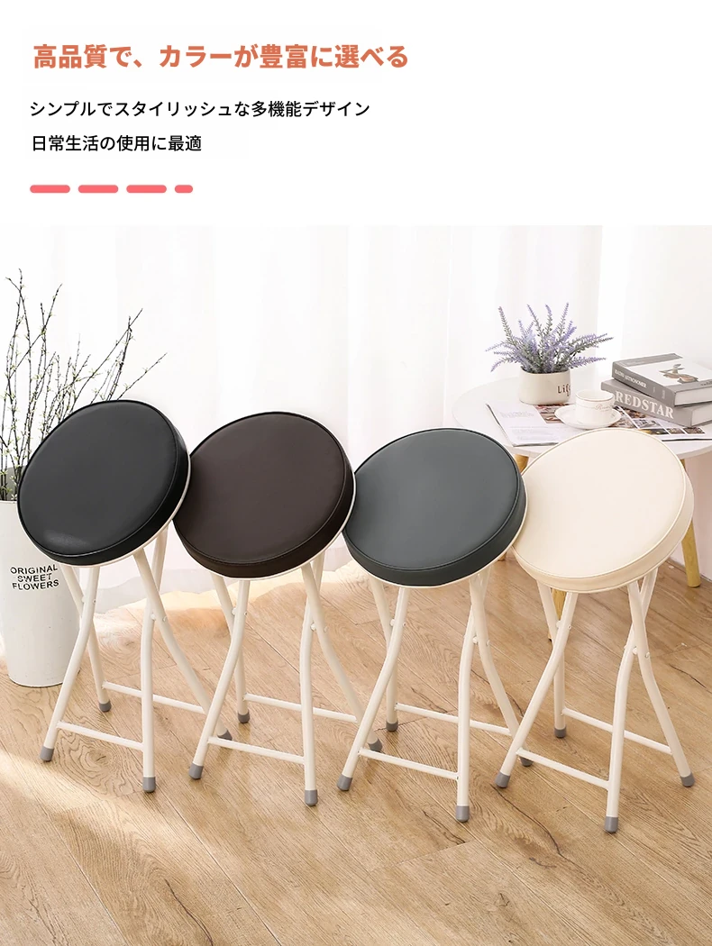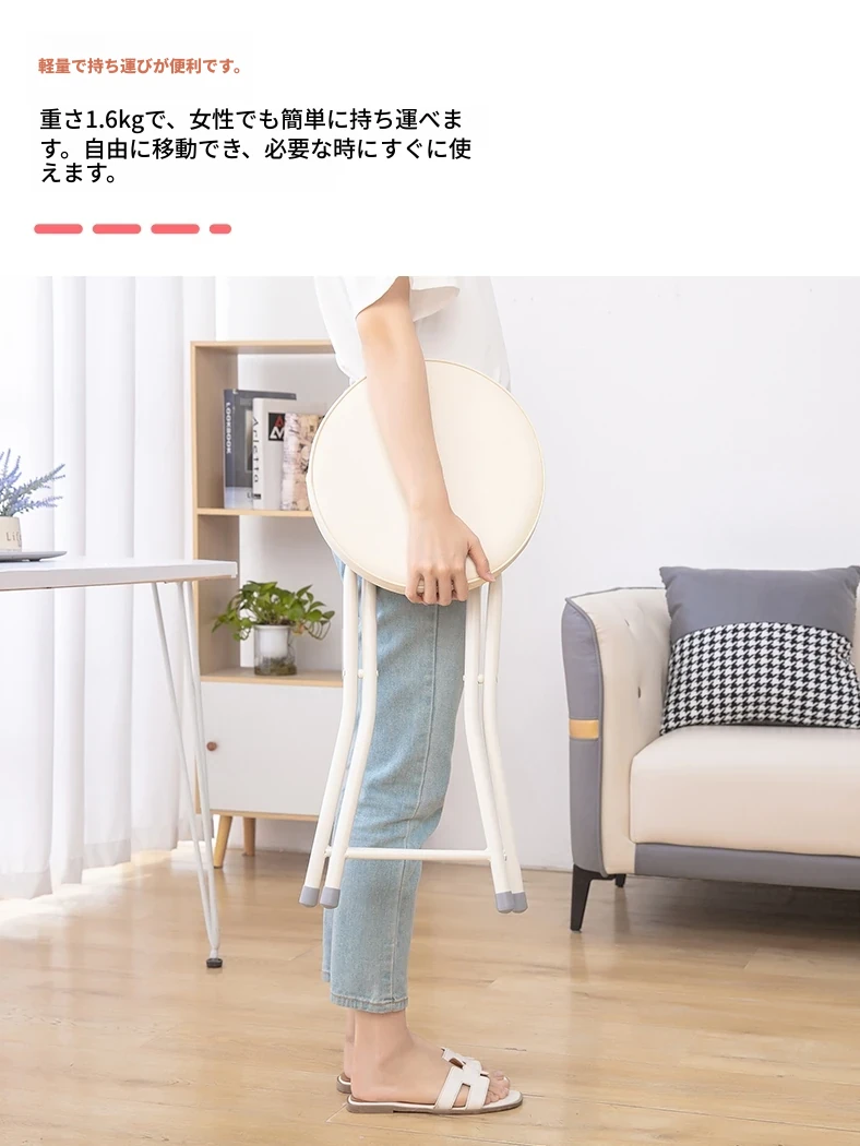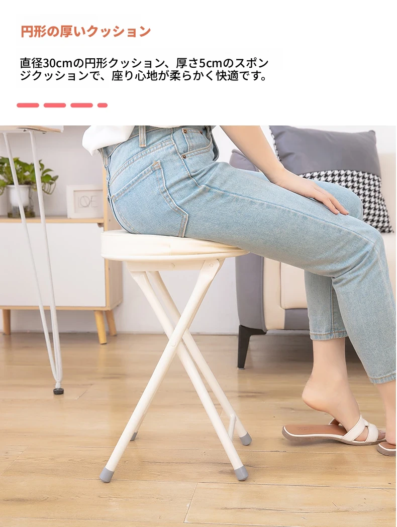 PUファッショナブル折りたたみ椅子 ホワイト(組み立て不要)