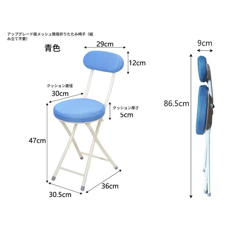 アップグレード版メッシュ折りたたみチェア ブルー(組み立て不要)