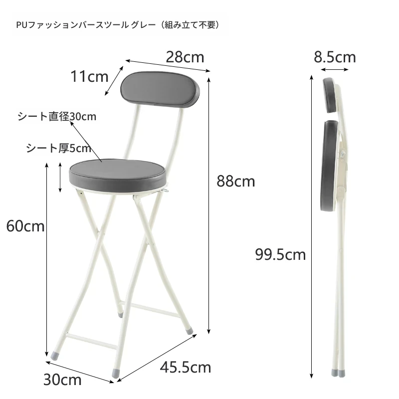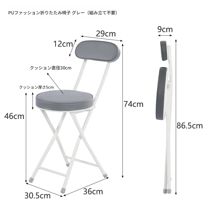 PUファッショナブル折りたたみチェア グレー(組み立て不要)