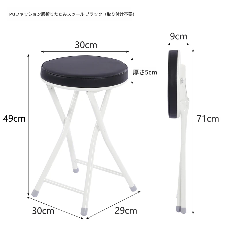 PUファッショナブル折りたたみ椅子 ブラック(組み立て不要)