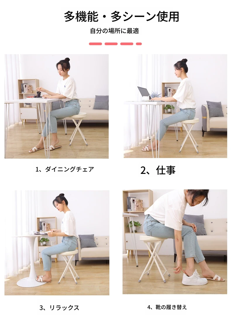PUファッショナブルスクエア折りたたみ椅子 ホワイト(組み立て不要)