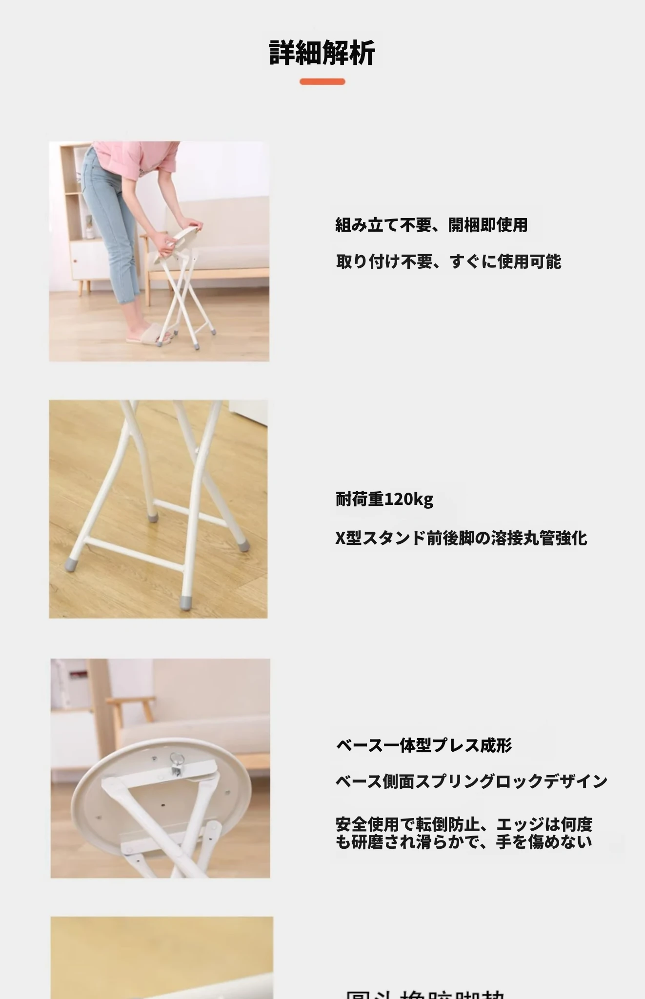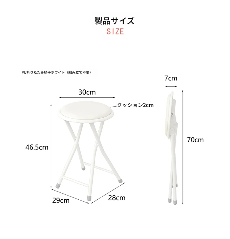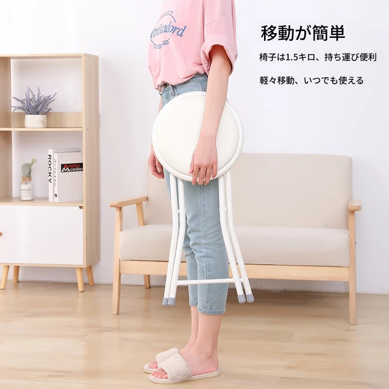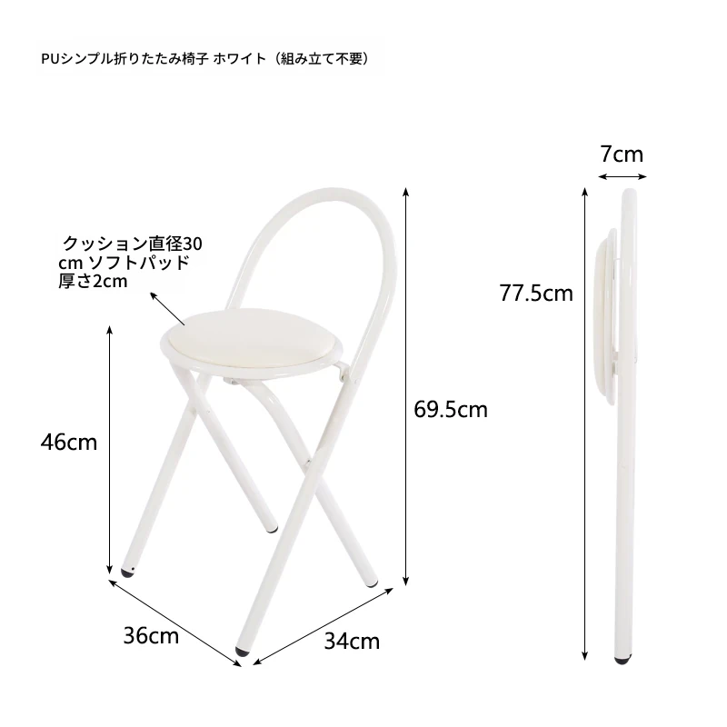 YSF簡易折りたたみ椅子|シンプルな白色の円形デザイン|レストランや仕事、会議に最適な臨時用椅子|コンパクトで持ち運び便利!