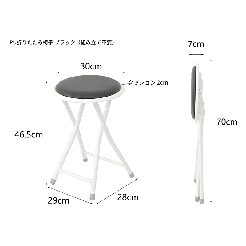 PUシンプル折りたたみ椅子 ブラック (組み立て不要)