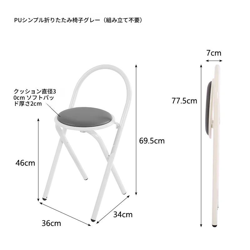 PUシンプル折りたたみ椅子 グレー (組み立て不要)