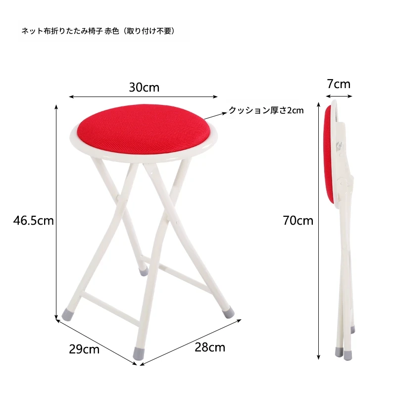 メッシュ折りたたみ椅子 レッド (組み立て不要)