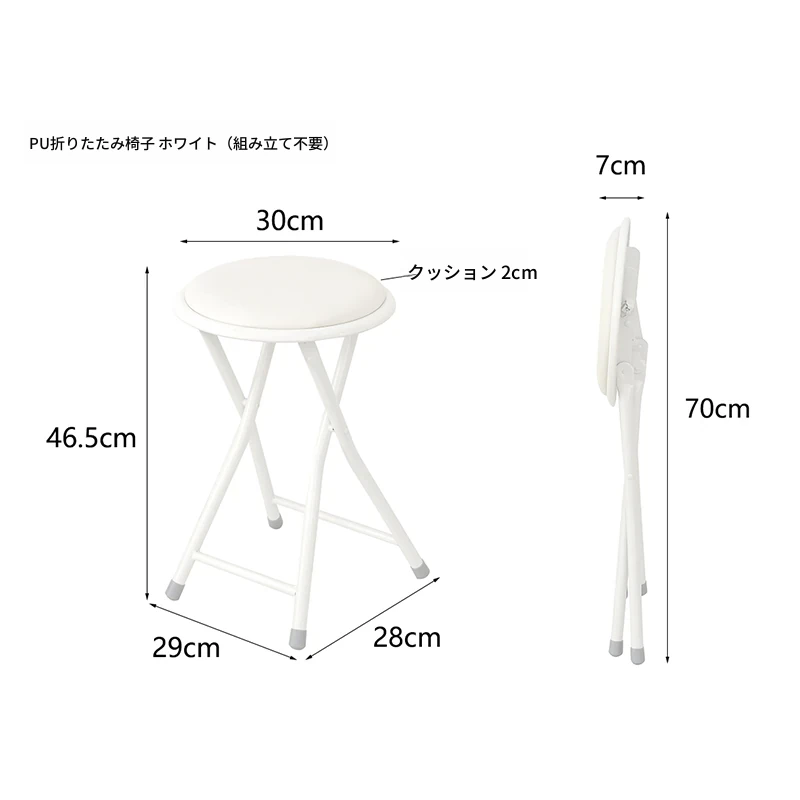 PUシンプル折りたたみ椅子 ホワイト (組み立て不要)