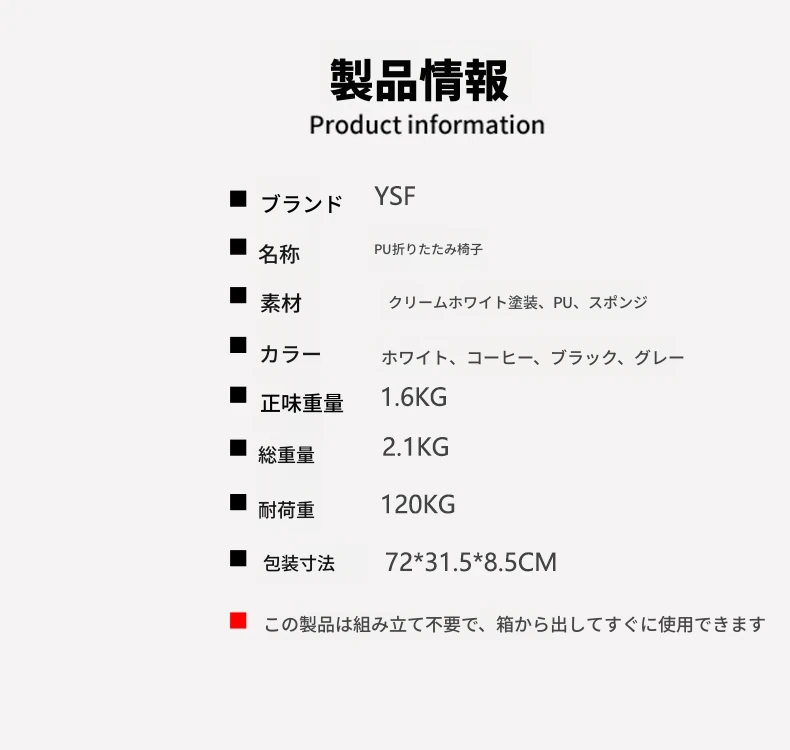 PU折りたたみ椅子 ホワイト (組み立て不要)