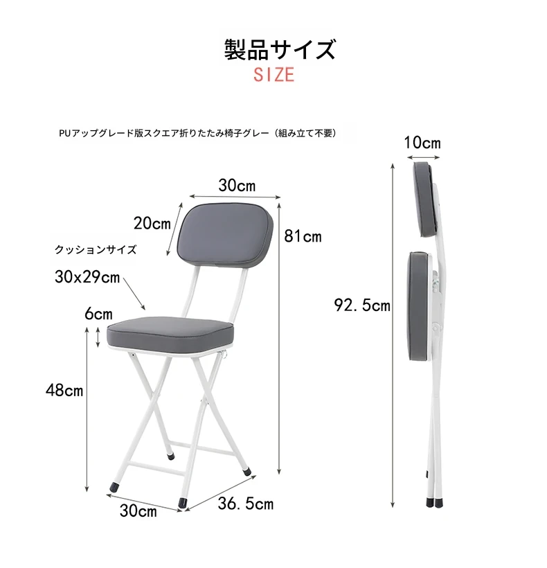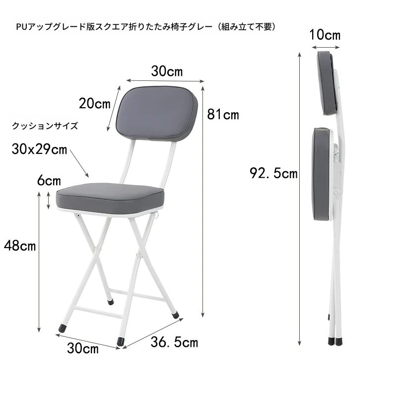 アップグレード版四角折りたたみ椅子 グレー(組み立て不要)