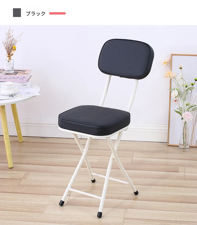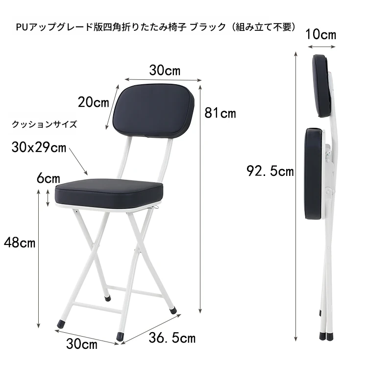 アップグレード版四角折りたたみ椅子 ブラック(組み立て不要)