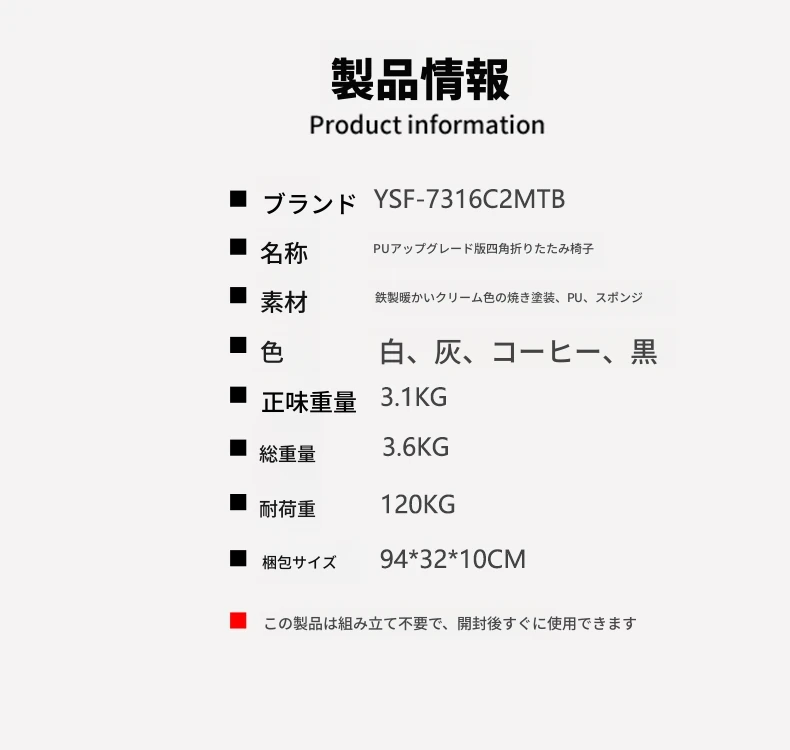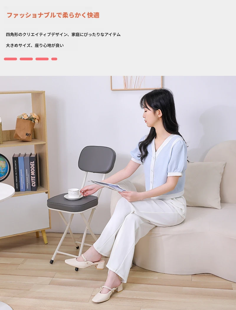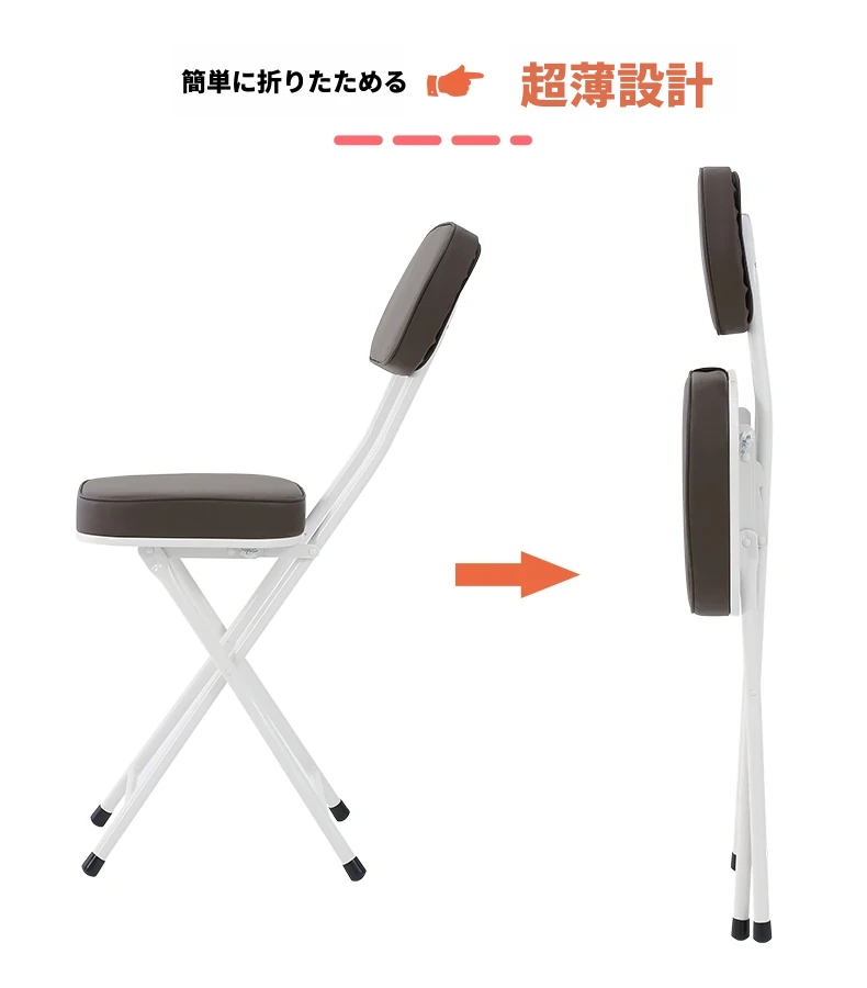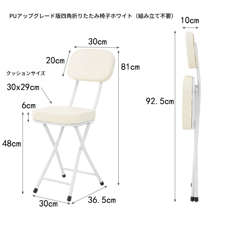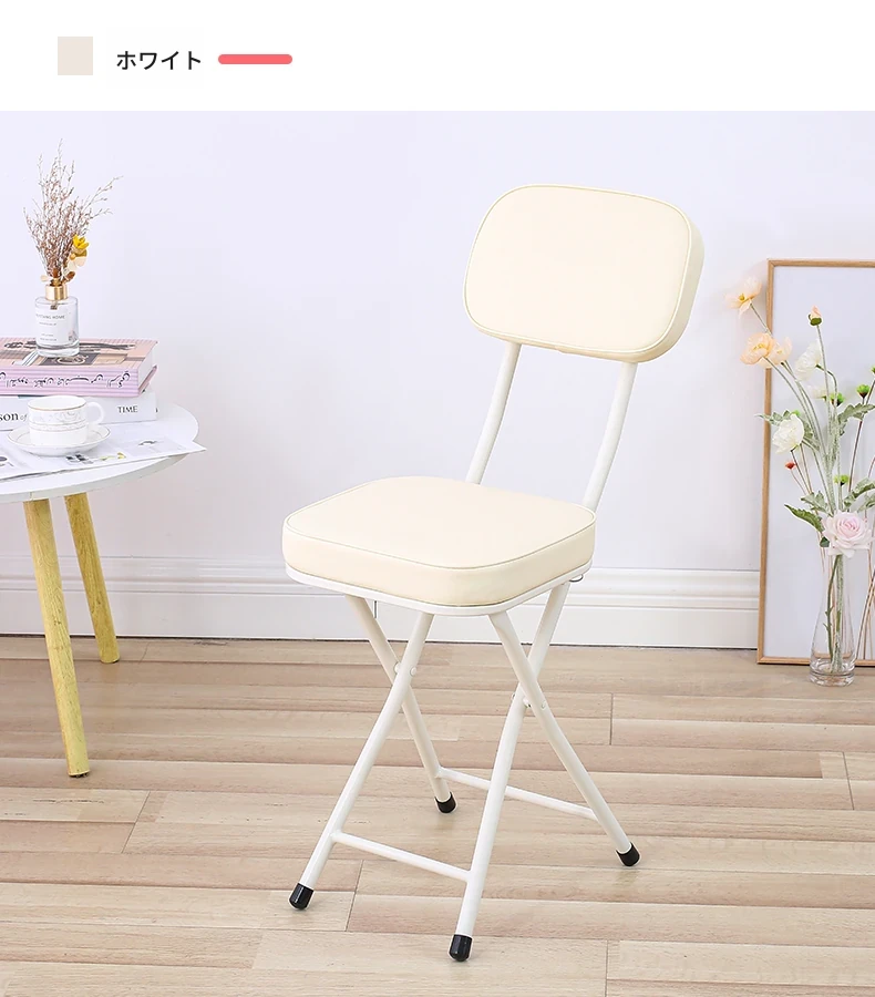 アップグレード版四角折りたたみ椅子 ホワイト(組み立て不要)