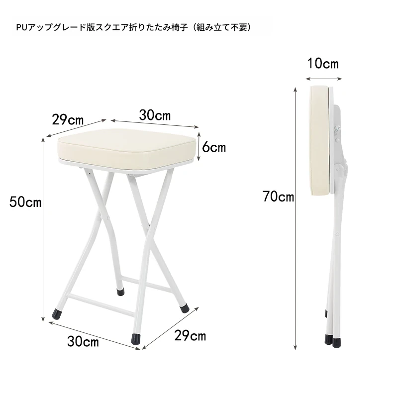 アップグレード版四角折りたたみスツール ホワイト(組み立て不要)