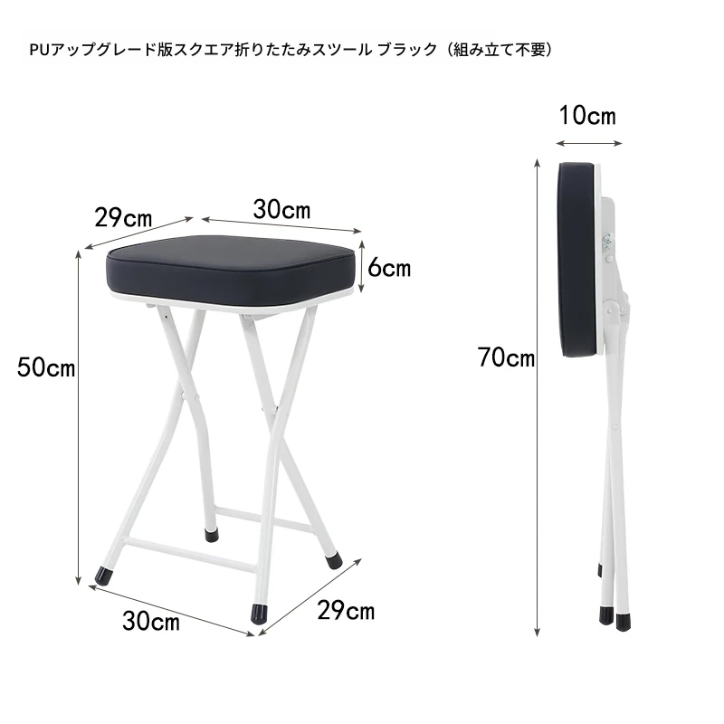 アップグレード版四角折りたたみスツール ブラック(組み立て不要)
