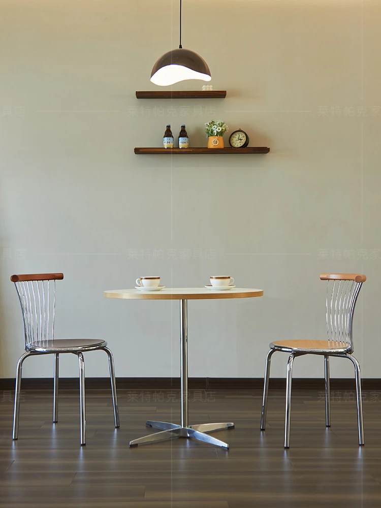デンマークのマスターデザインによるバウハウススタイルの背もたれ椅子 - ヴィンテージ感あふれる商業用アイアン製、ステンレススチール風のレストラン用ダイニングチェア。おしゃれな空間を演出し、居心地の良さを提供します!
