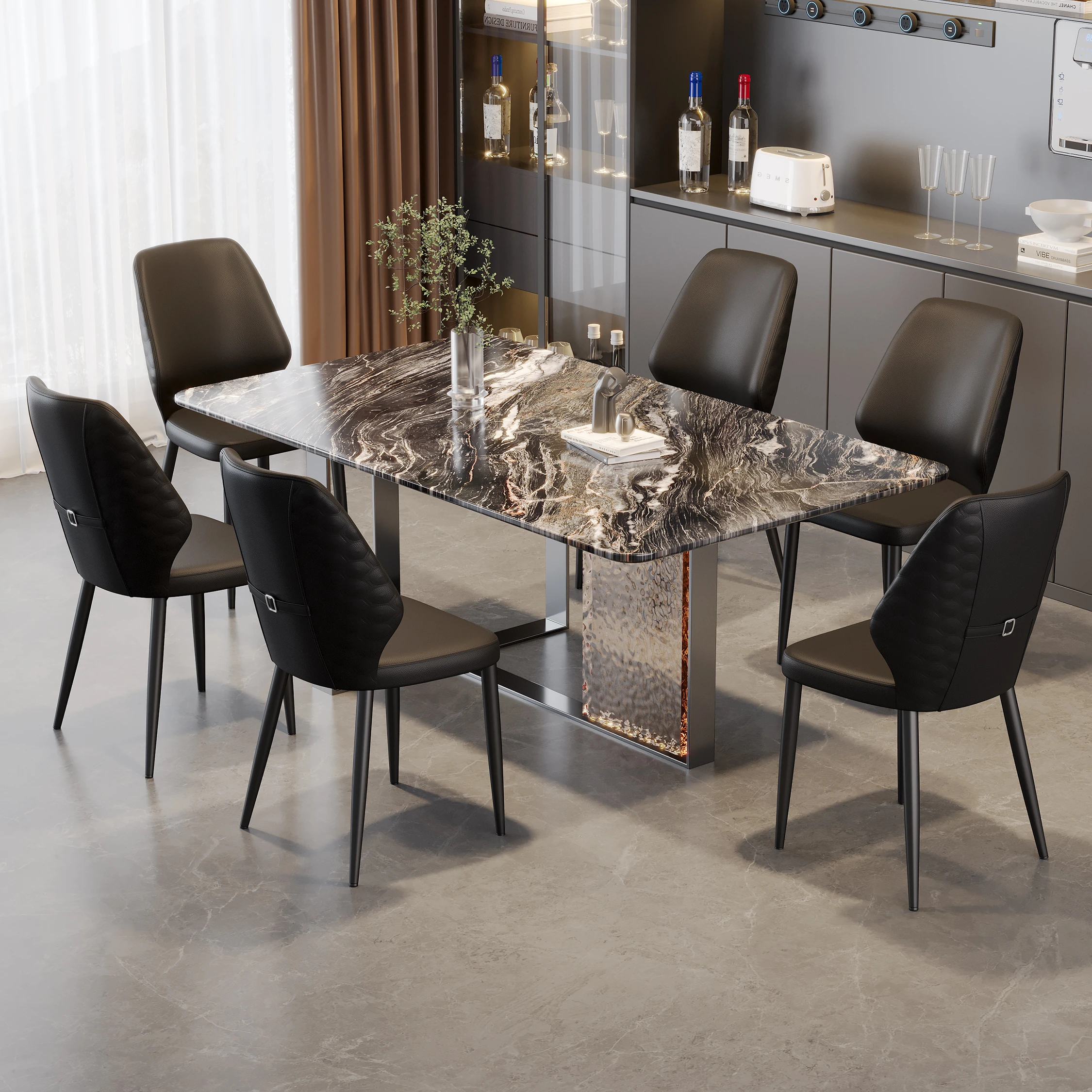 2025年新作!高級イタリアンデザインの家庭用ダイニングテーブル&チェアセット。ラグジュアリーなソフトパッキング背もたれ椅子、ホテルやレストランにも最適。洗練されたスタイルで、あなたの食卓を格上げします!